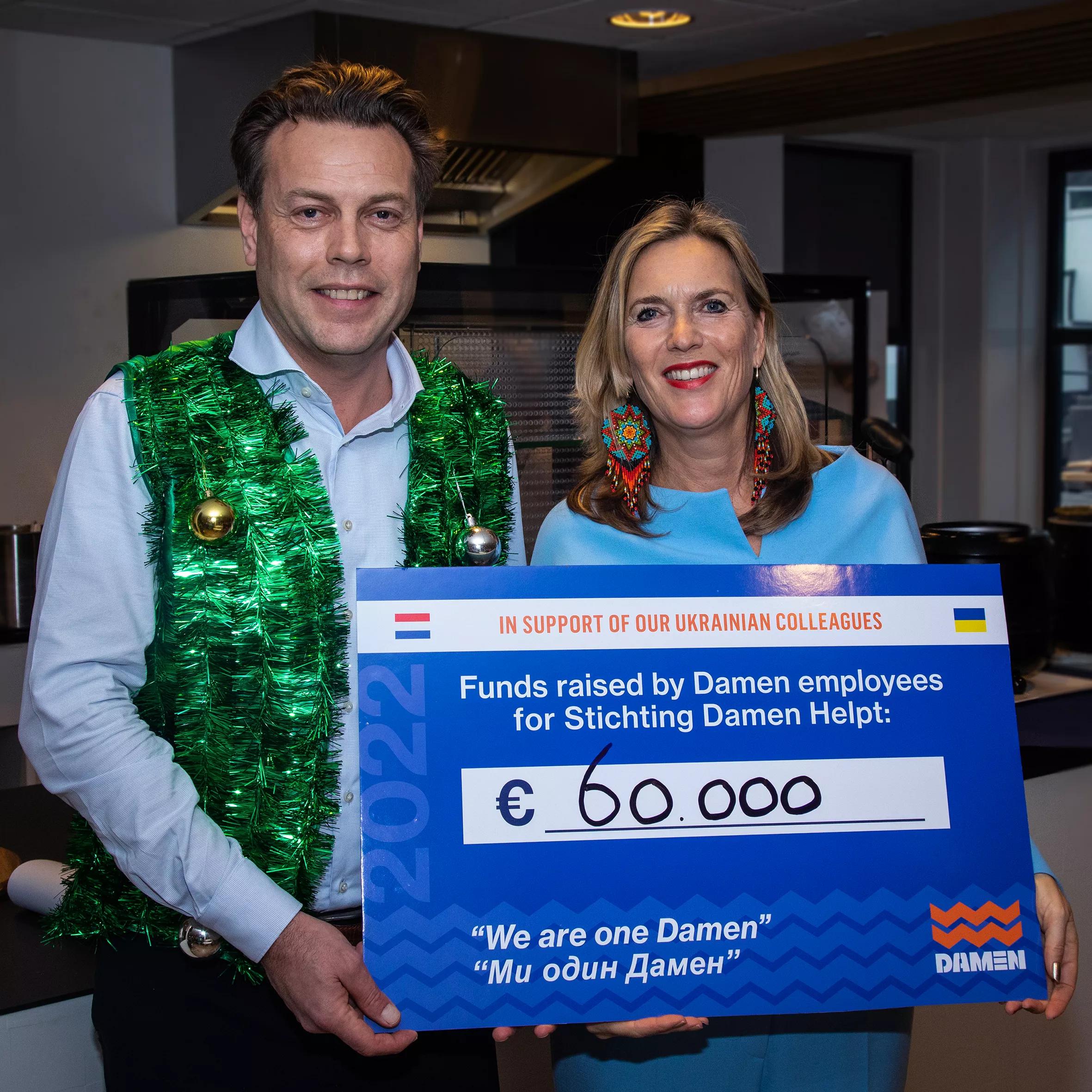 “I am so proud of all of you for showing your involvement and sharing part of your earnings with our Ukrainian colleagues,” Annelies Damen said to the colleagues from the Damen establishment in Gorinchem gathered for a Christmas lunch on December 22. “Your paychecks for days off from work that you did not use in 2022 were partly donated to the Foundation Damen Support. The end-of-year extra was partially donated.