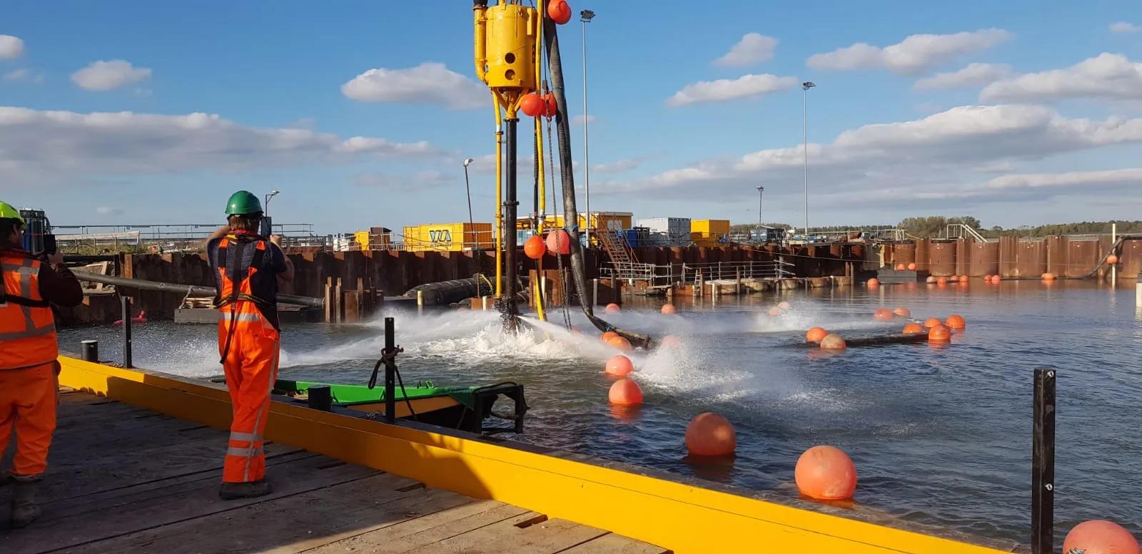 Building pits for tube tunnels or underground car parks can be excavated using a submersible sand pump. Usually such construction works entails small scale dredging in confined spaces. The DOP submersible dredge pump has been designed for the job: its limited size makes it fit for the restricted areas of civil constructions, and its handling allows for precision dredging.
