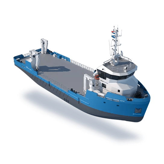 This multifunctional workboat combines a compact footprint with proven offshore capability. The SeV 4312 includes the latest technology and has fit for purpose technical installations. It features a large clear deck, crane options, and is well suited for ROV and diving support. Designed for flexibility, it can be tailored for survey, inspection and multi-role utility tasks in both coastal and offshore environments.
