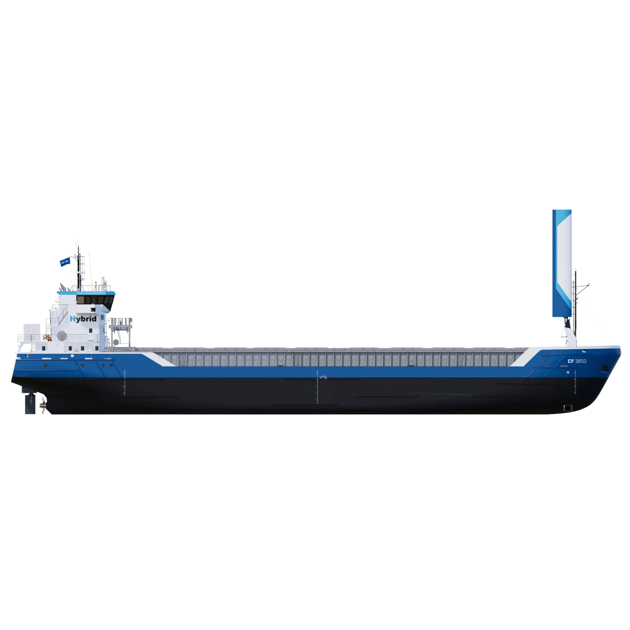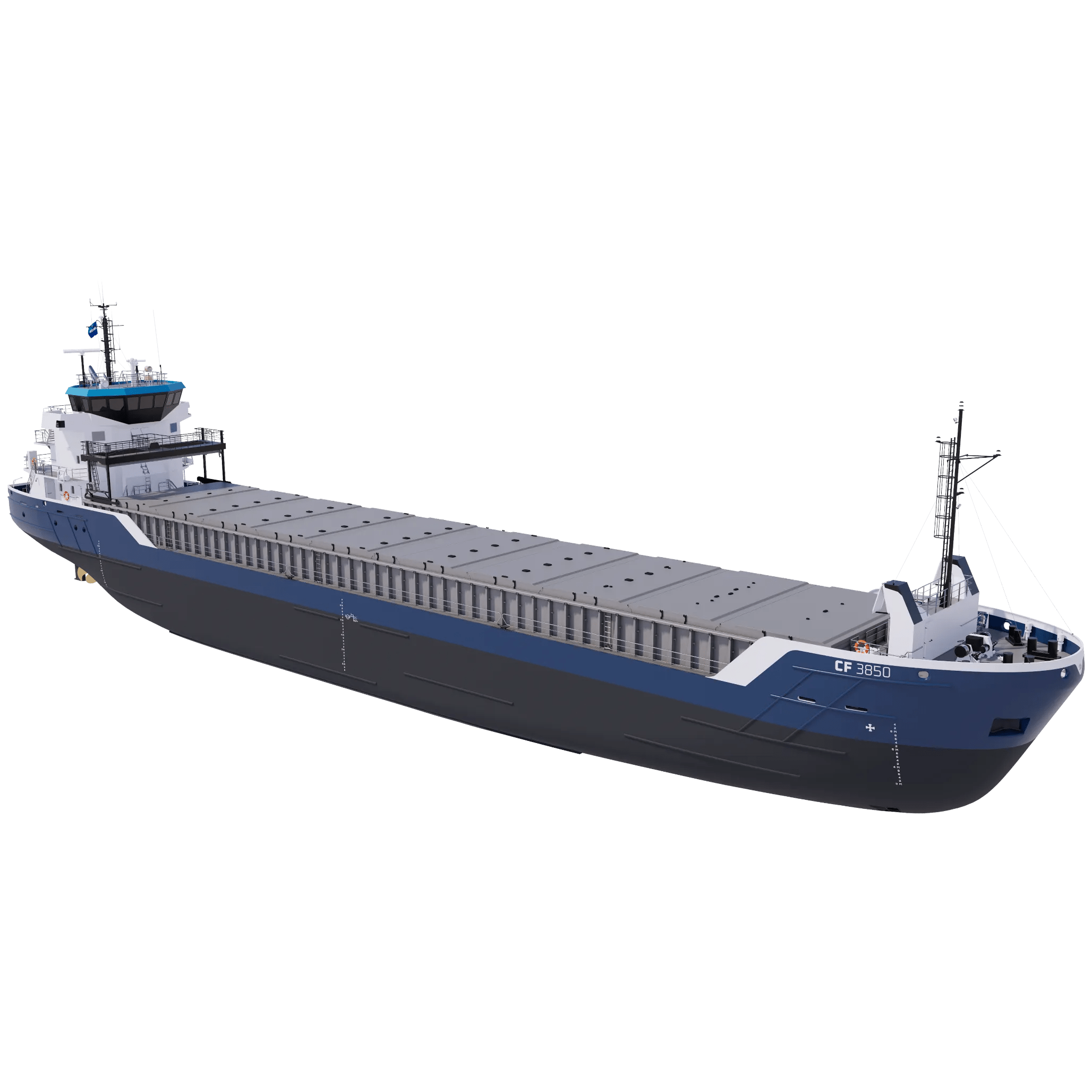An icon of the short sea shipping sector, the Combi Freighter (CF) 3850 has demonstrated its capabilities over many years in diverse operations. It forms a solid foundation for our entire cargo vessel portfolio. The latest generation CF 3850 is optimised for high efficiency. This includes its low resistance, which ensures minimal fuel consumption. The vessel is also prepared for installation of a range of efficiency-enhancing sustainable solutions. Designed for maximum cargo capacity with minimal ballast, the CF 3850 offers extreme flexibility. Its box-shaped hold enables multiple positions for grain bulkheads, and a tween deck provides full bulk and breakbulk cargo. Lashing eyes along the longitudinal bulkheads ensure precise cargo fixation.