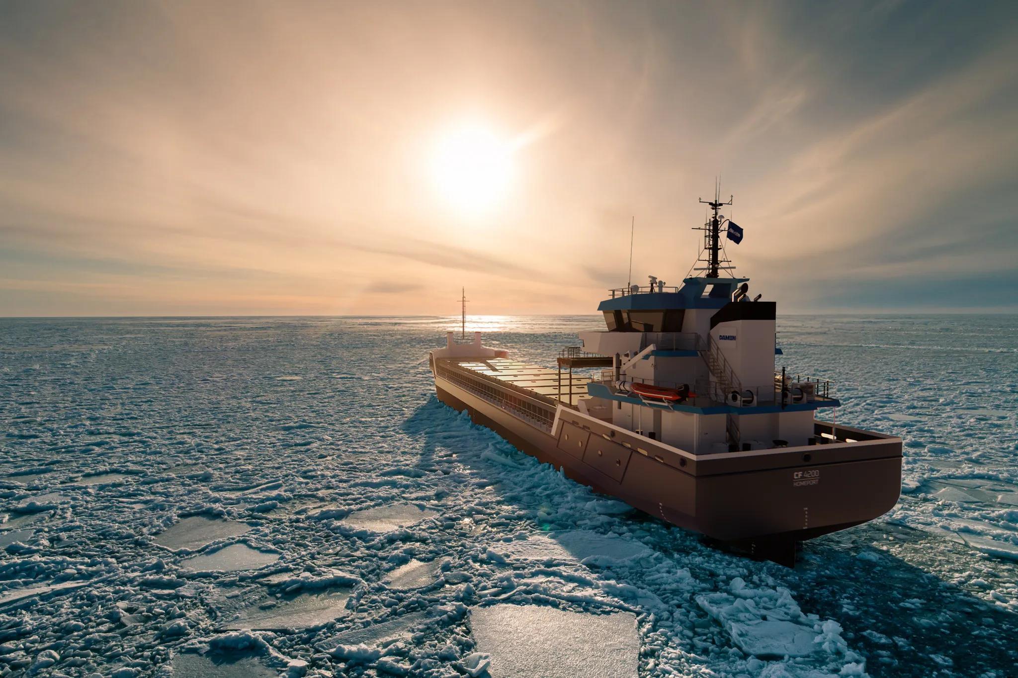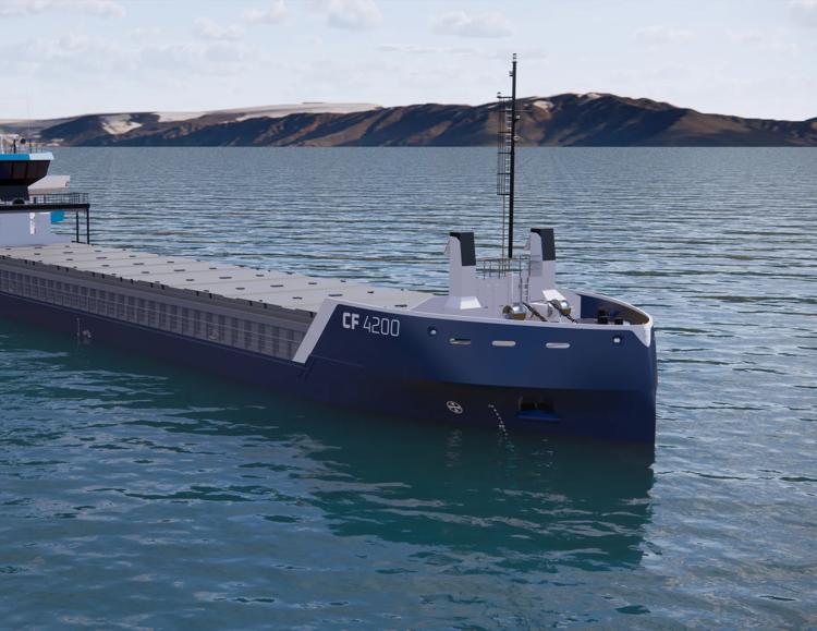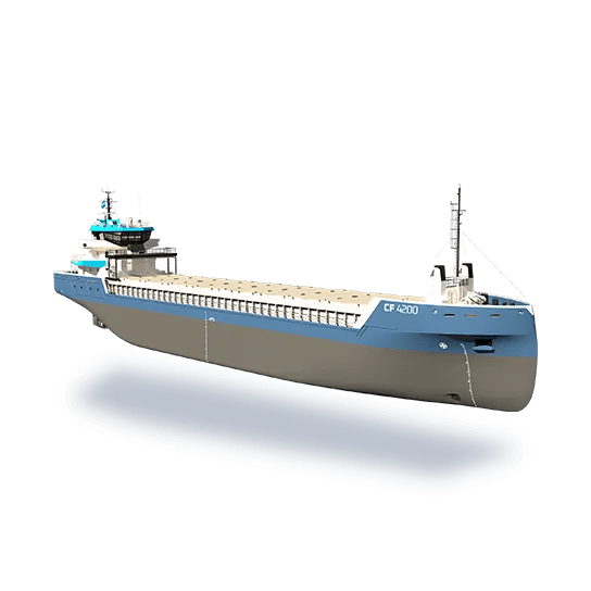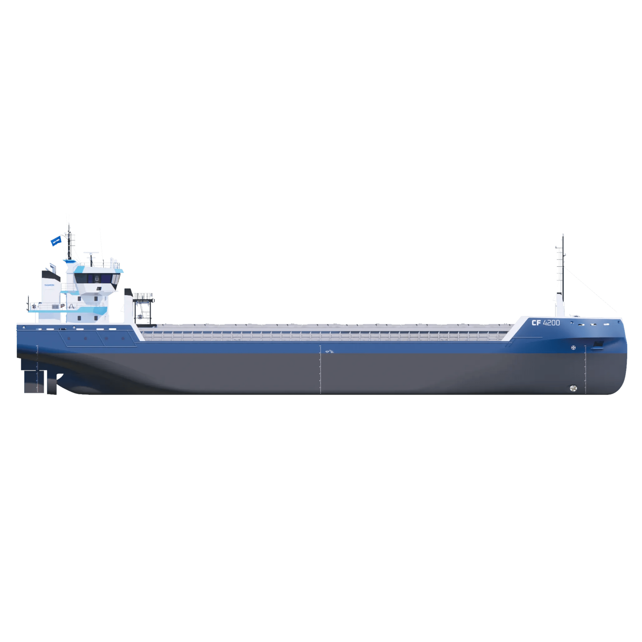 The Combi Freighter (CF) 4200 offers operational flexibility. The vessel is available in both conventional and Ice Class versions, ensuring its capability to operate over a wide geographical area. Efficient performance results from the CF 4200 vessel’s modern hull, which is optimised balance efficient open-water sailing with minimal resistance in ice conditions. It includes fine entry angles at the bow and a large-diameter propeller within a nozzle for enhanced propulsion efficiency. The CF 4200 also offers cargo versatility with its box-shaped hold allowing multiple positions for its two grain bulkheads. A tween deck provides flexibility for transporting both bulk and breakbulk. Cargo can be precisely secured thanks to lashing eyes located along the longitudinal bulkheads.