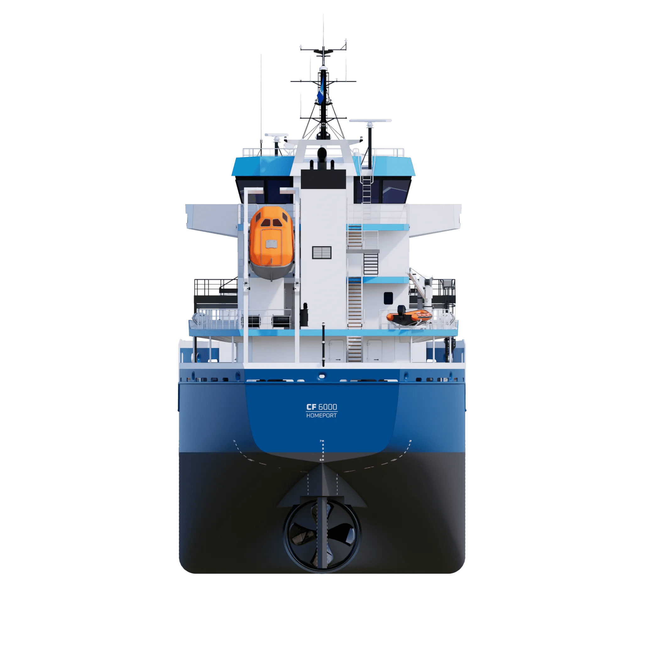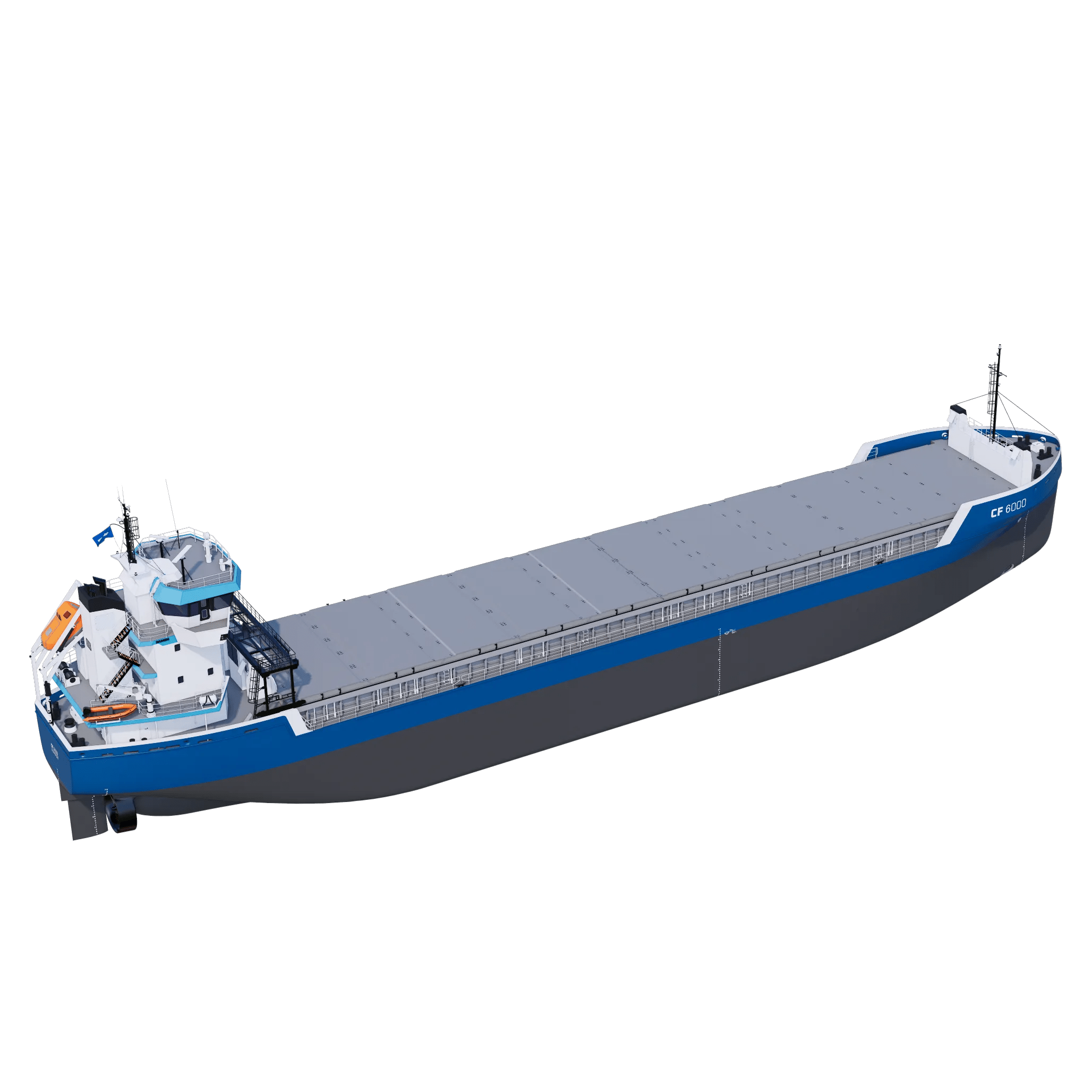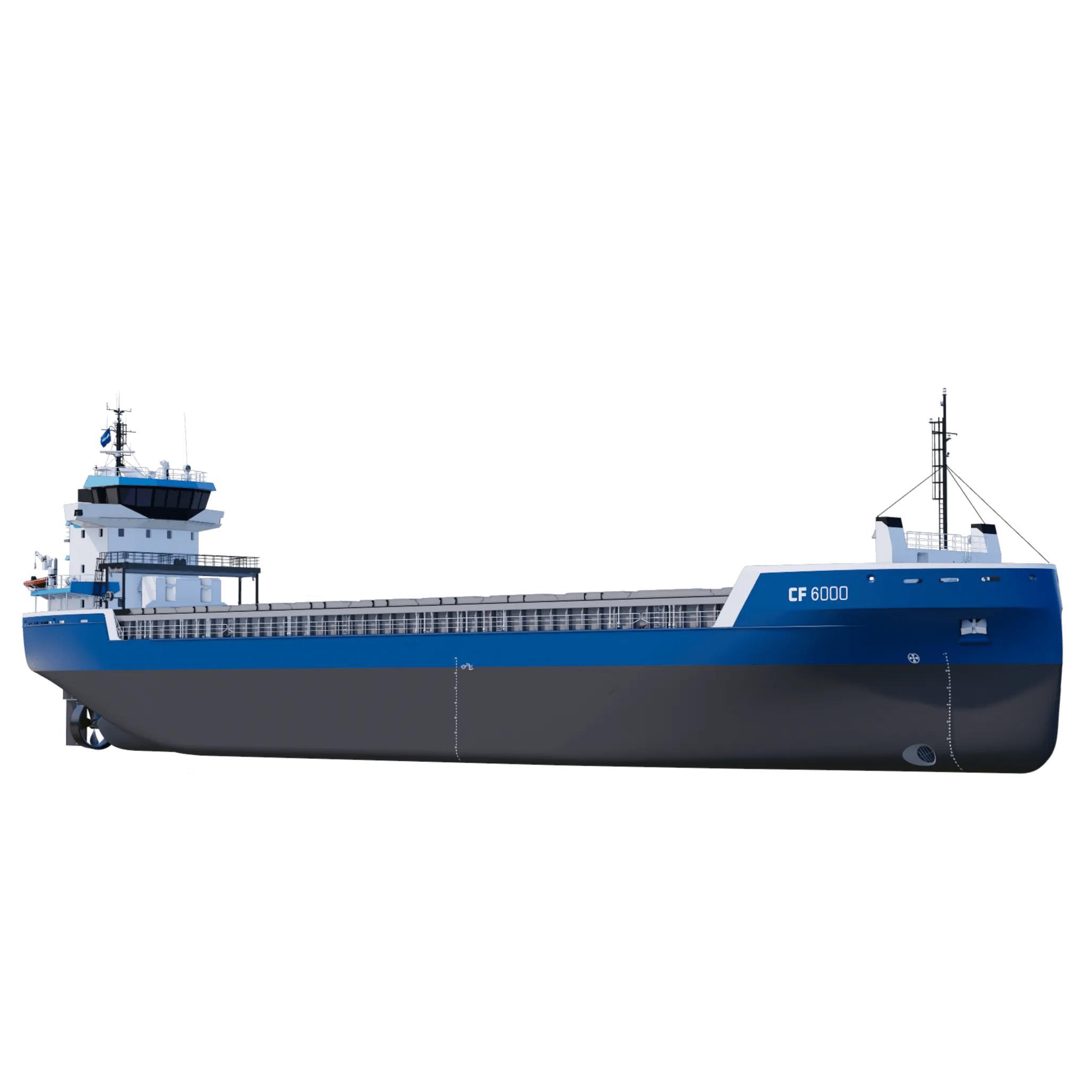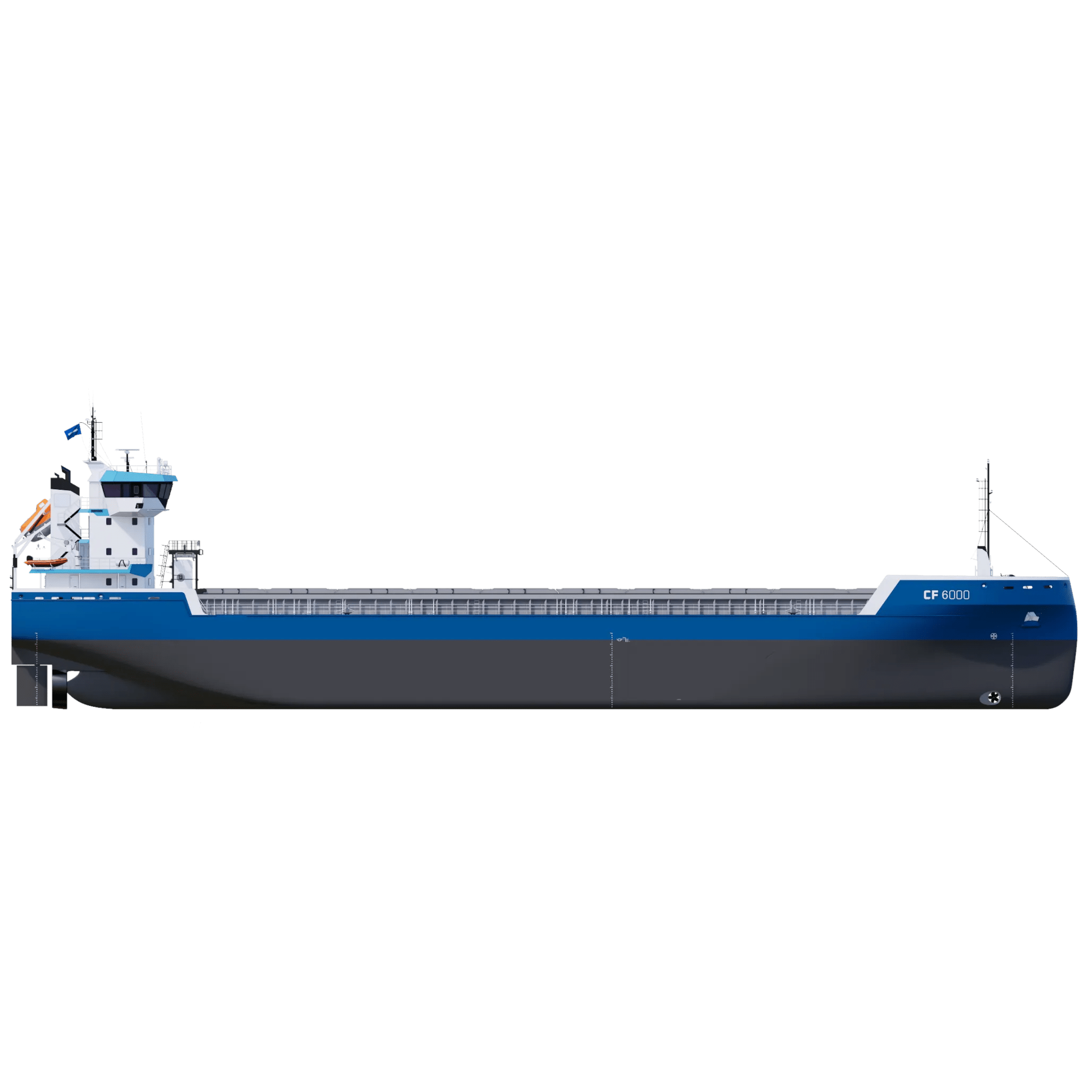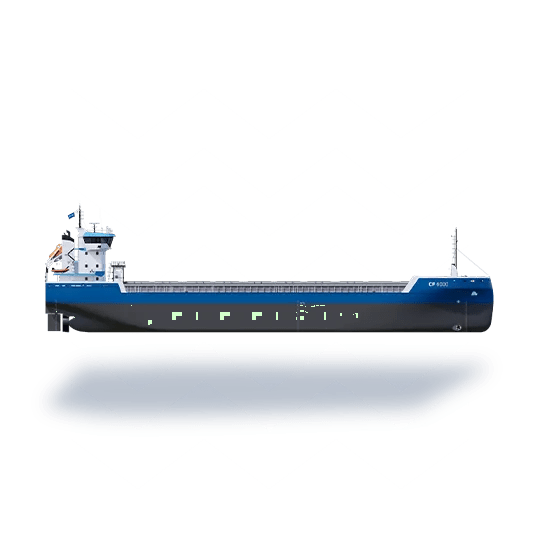 Offering optimised cargo capacity and maximum efficiency, the Combi Freighter (CF) 6000 is available as either a conventional vessel or with Ice Class capabilities.The CF 6000 is designed to meet IMO Type 1 dangerous good requirements. Efficiency comes as a result of diverse features, including the smooth hull lines and ability to pierce waves, resulting in low fuel consumption. The vessel is additionally prepared for installation of a range of options to further increase efficiency and sustainable performance. With multiple positions possible for the grain bulkheads and maximum length hold, the vessel offers optimal cargo versatility.