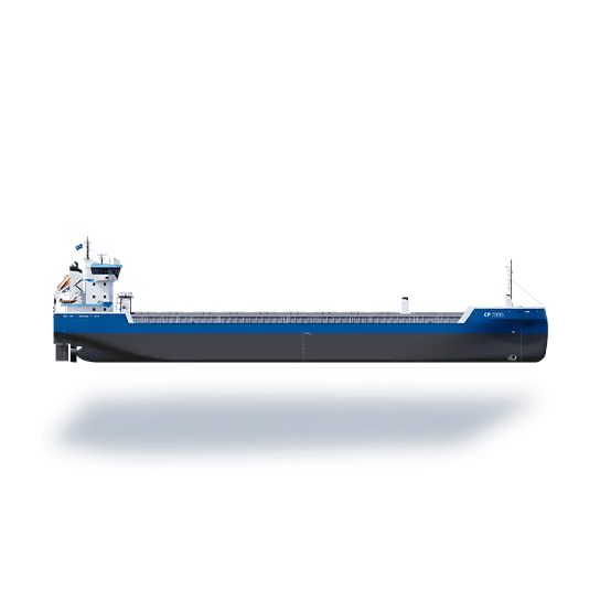 The Combi Freighter 7000 is designed for optimal cargo capacity, in the most efficient manner possible. The vessel is designed to meet IMO Type 1 dangerous good requirements. It features an evolved hull form, with smooth lines, offering minimal resistance in the water. At the same time, its bow is able to pierce the waves, ensuring minimal fuel consumption and significantly reduced emissions. The vessel is available in conventional and Ice Class versions. In Ice Class operations, power is generated externally, thereby ensuring ample power for the vessel to operate in open waters, at varying draughts, including deep seas. Multiple positions are available for the two grain bulkheads in the box-shaped hold, while a tween deck provides for bulk and breakbulk flexibility. Lashing eyes along the longitudinal bulkheads allow precise fixation of cargo.