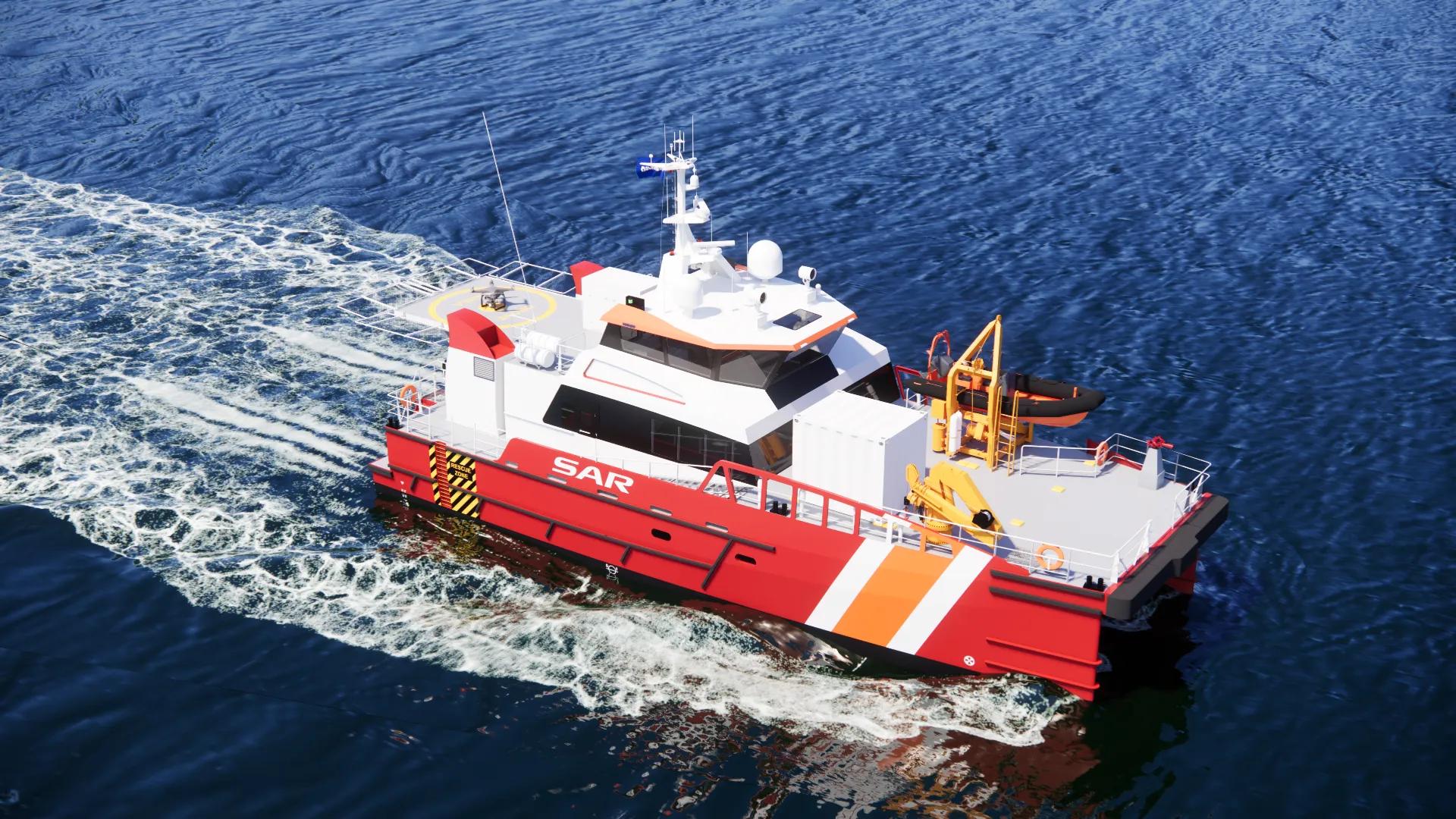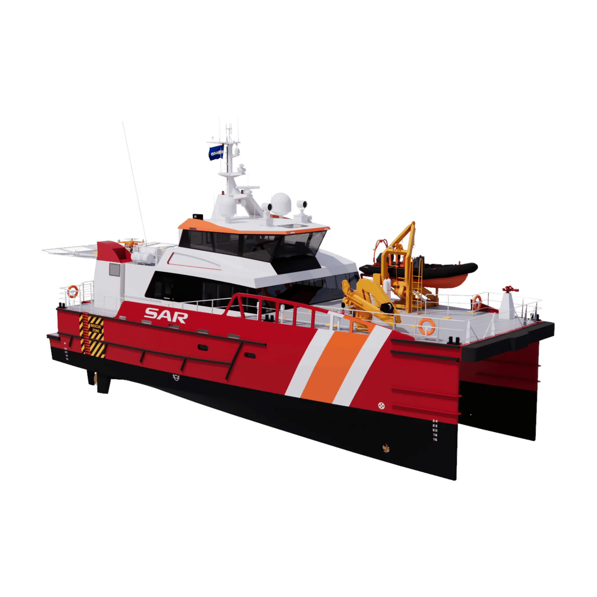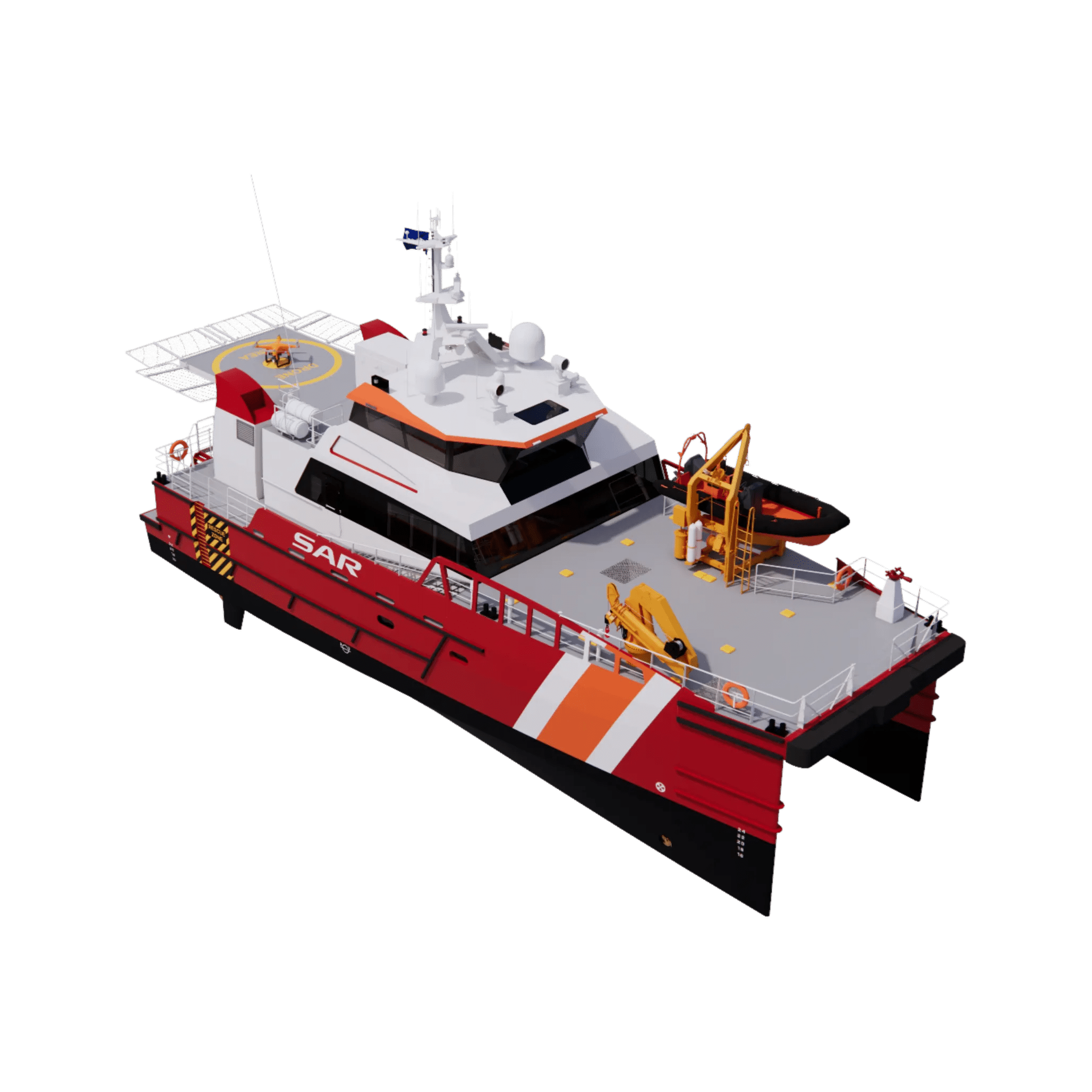 Damen’s Fast Crew Supplier 2710 SAR is an exceptionally capable platform for demanding offshore operations. Its advanced seakeeping performance and elevated wheelhouse position ensure a high level of operability, even in rough conditions. The spacious foredeck and flexible layout provide ample room for mission-specific equipment, while the comfortable interior supports safe and efficient transport of survivors. In addition, the proven Twin Axe hull design delivers low resistance and outstanding fuel efficiency across the vessel’s full speed range.