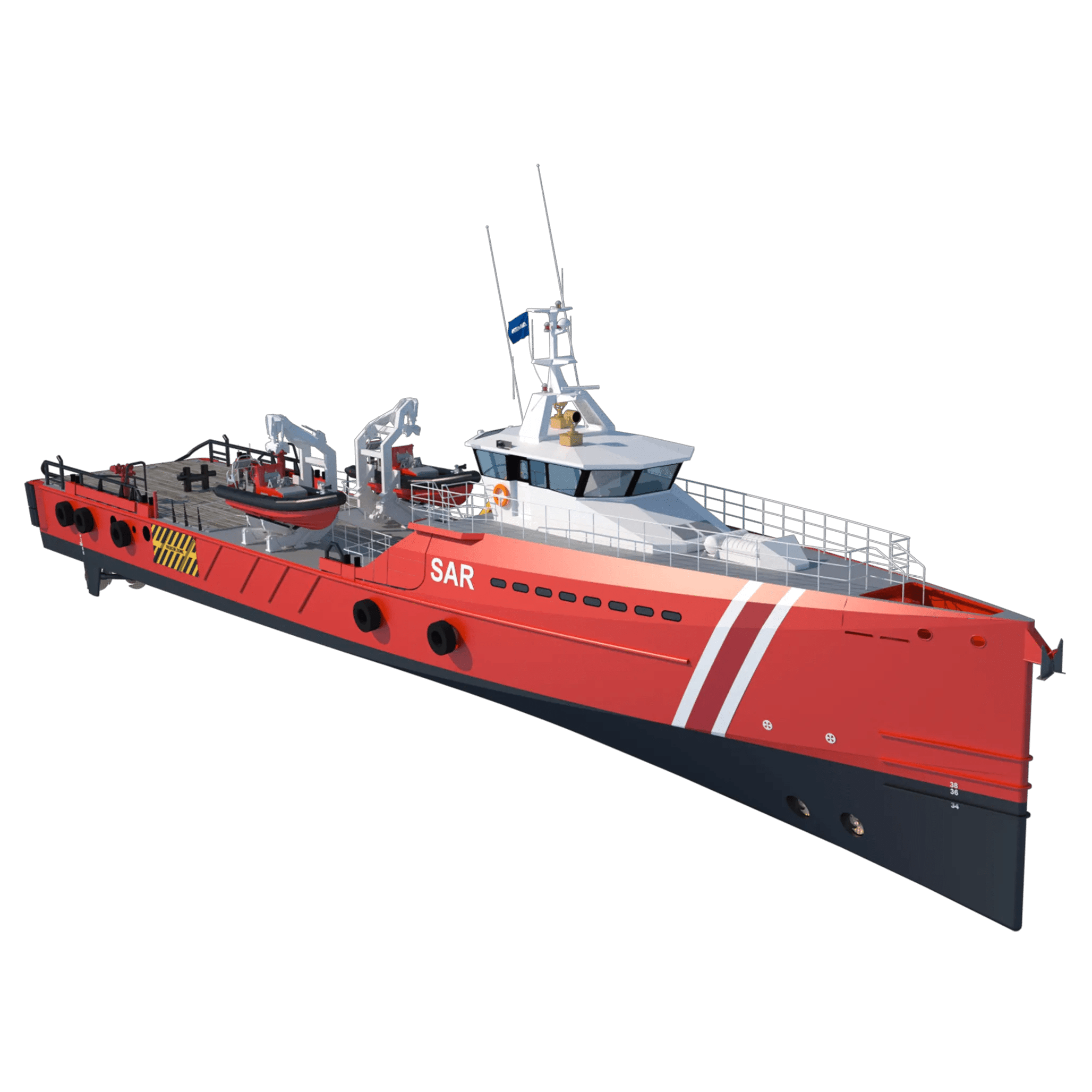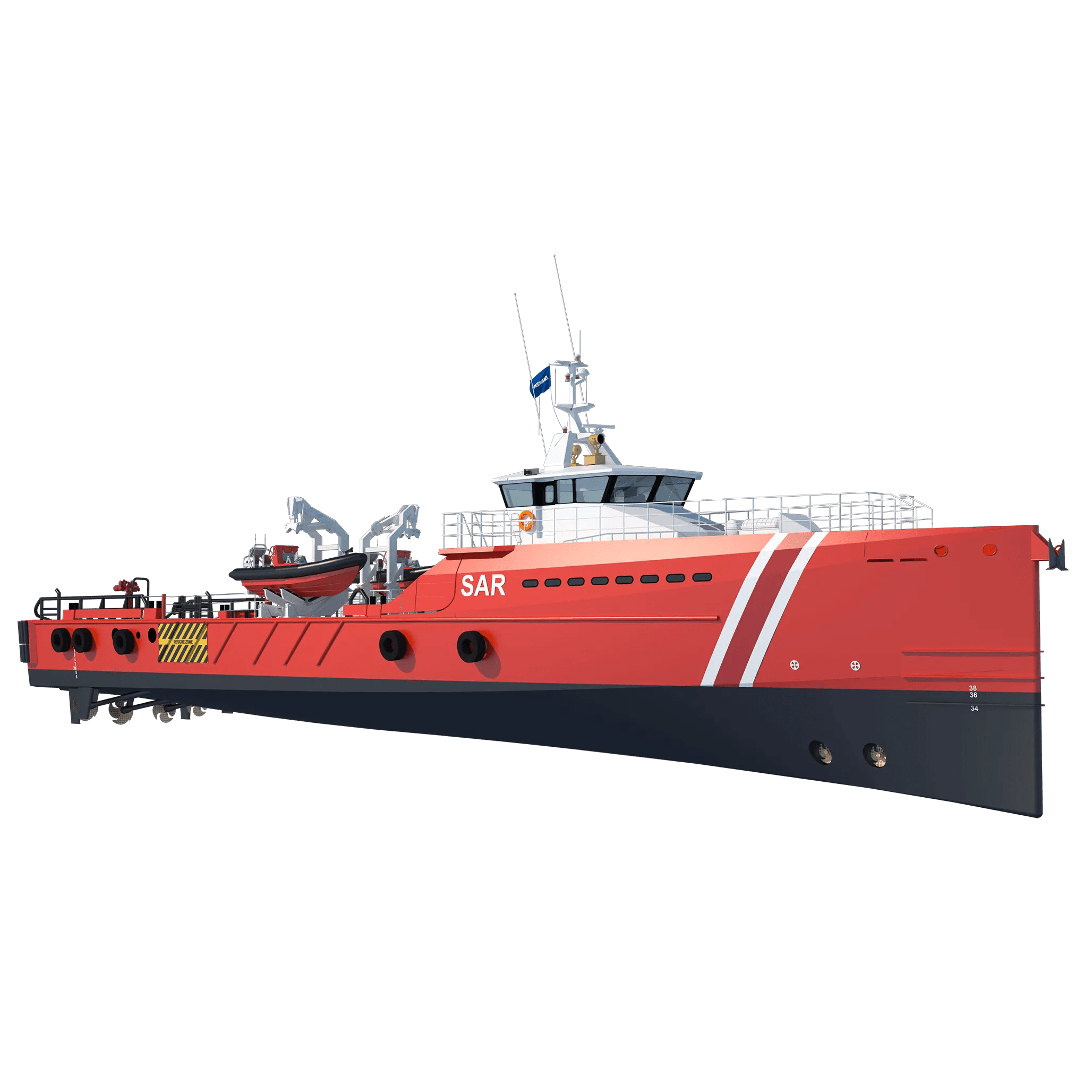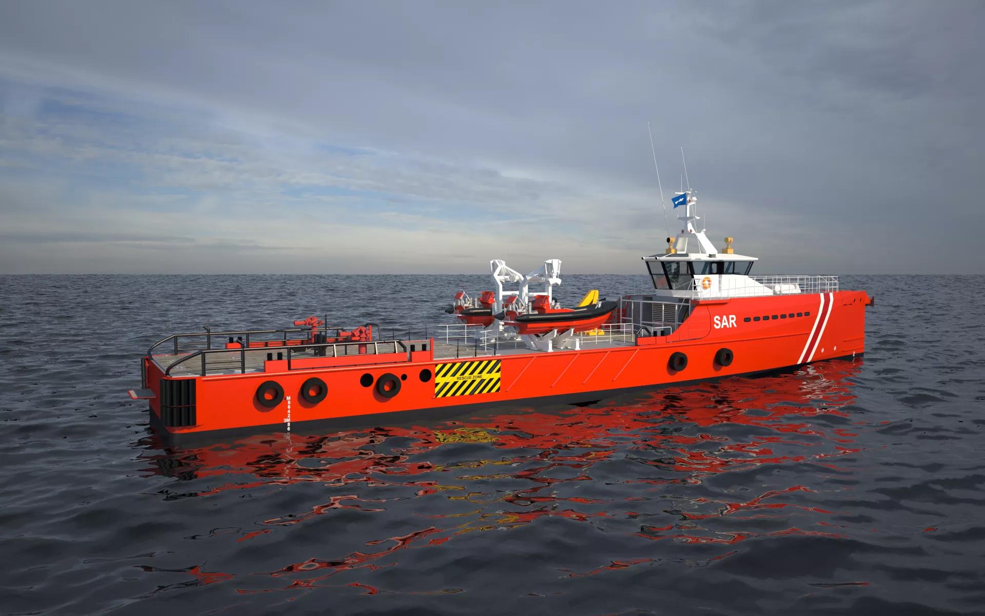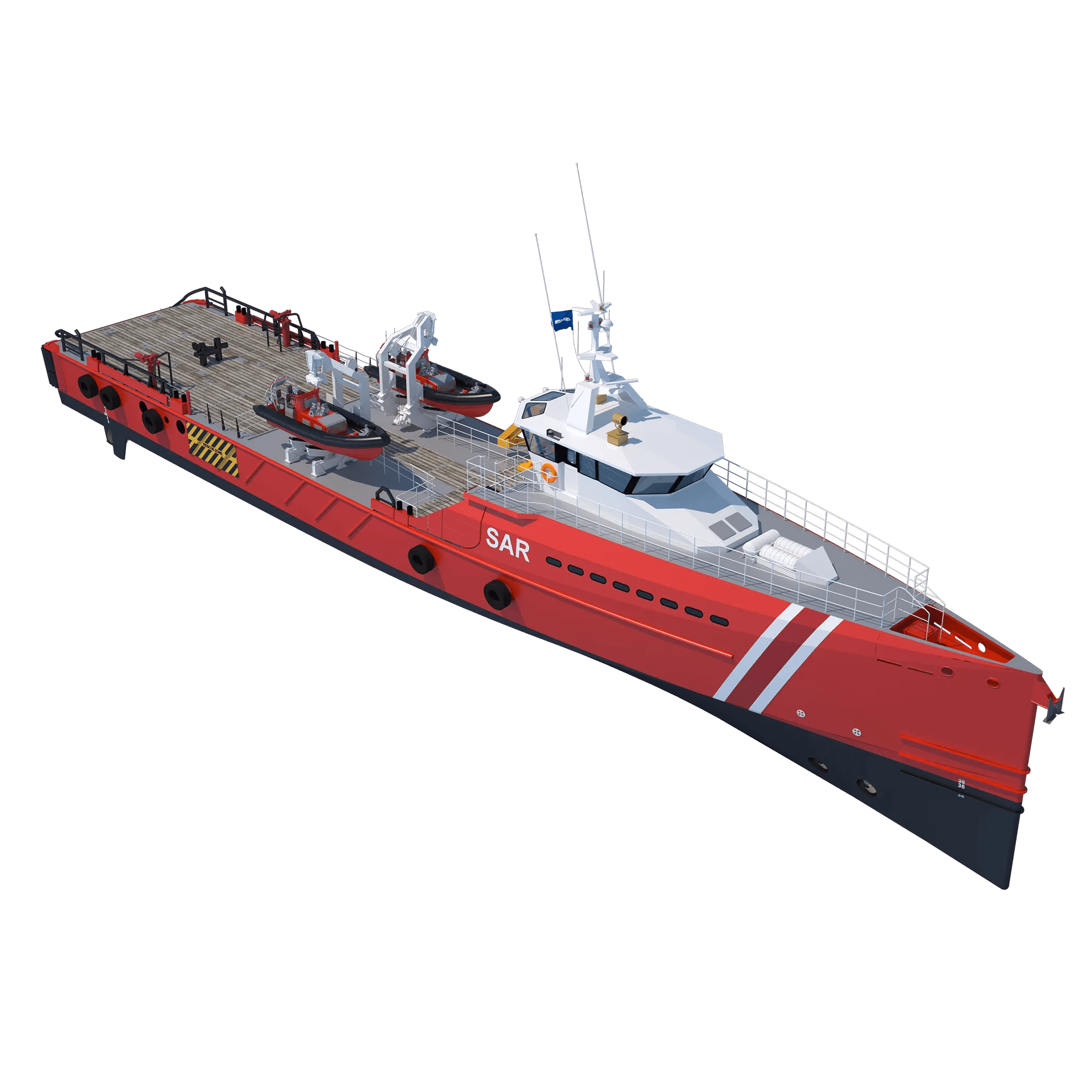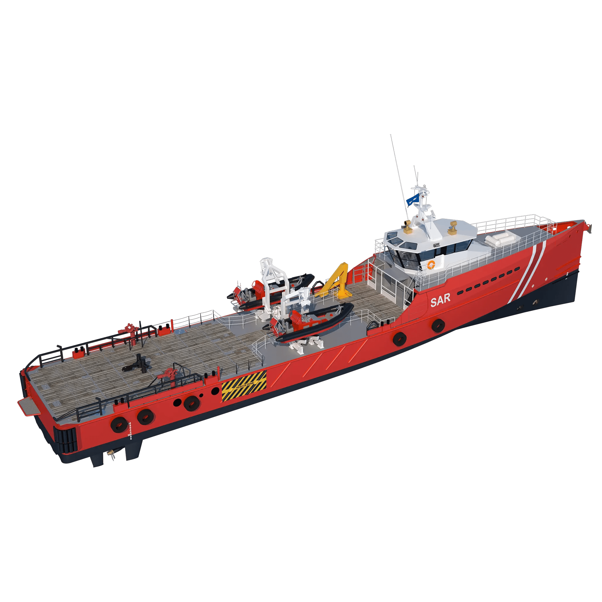 - Large aft deck for rescue gear, RHIBs and survivor handling