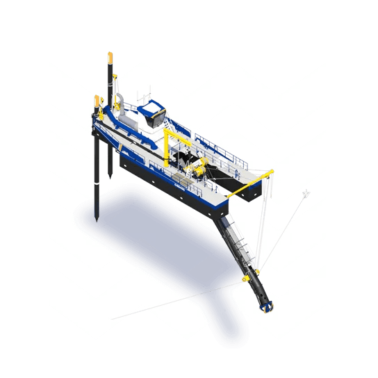 The second type of the brand-new cutter suction dredger series, the CSD450 boasts a complete redesign. Operational excellence is key in the design; hence the raised operating cabin, the flush decks and the raised winch platform well away from the crew. The fully dismountable dredger is equipped with a newly designed high efficiency dredge pump, which can be controlled by the intuitive controls integrated in the dredge masters chair.