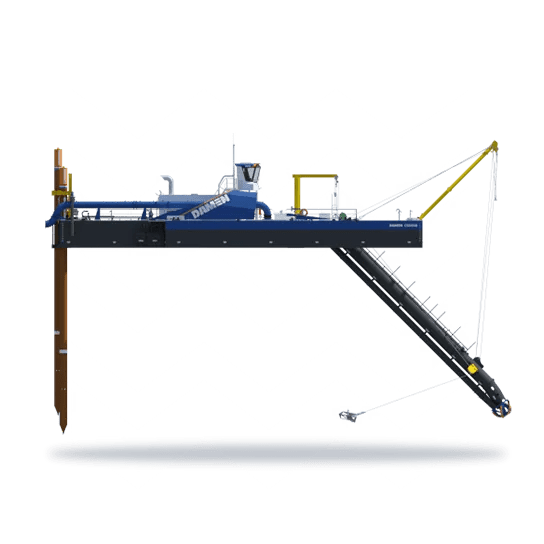 The modularly built CSD600 is the first of the new cutter suction dredger (CSD) series. Completely redesigned, the CSD has been made with crew safety and operational excellence in mind. The state-of-the-art new dredge pump design and the integrated spud carriage boost the efficiency of the stationary dredger. A spacious raised operating cabin offers an excellent view of the fore deck and dredge project. Fingertip control and digital connectivity optimise monitoring and control.