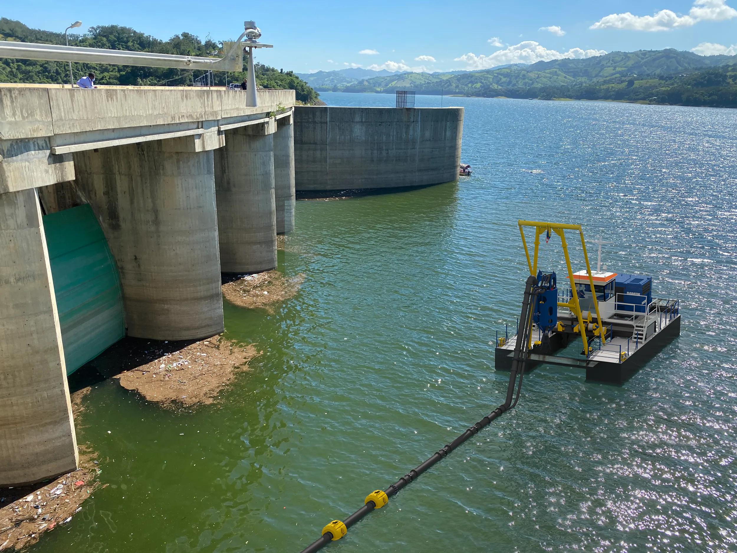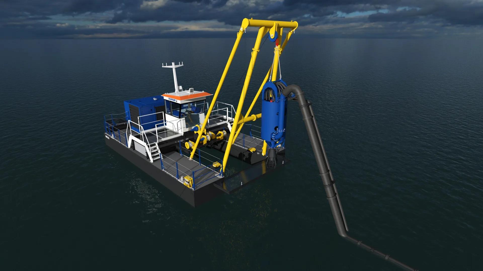 Sand mining or hydro power dam maintenance dredging has no depth limit when the DOP Dredger is used. The wire-suspended DOP submersible dredge pump is lowered to the required depth, maximising the mixture concentration which in turn boosts the dredger’s production. The pressurised jet water ensures a constant flow of sand and silt to the suction head. Additionally, the modular dredger can be dismantled into components that stack easily into standard containers, making it possible to reach the most remote areas.