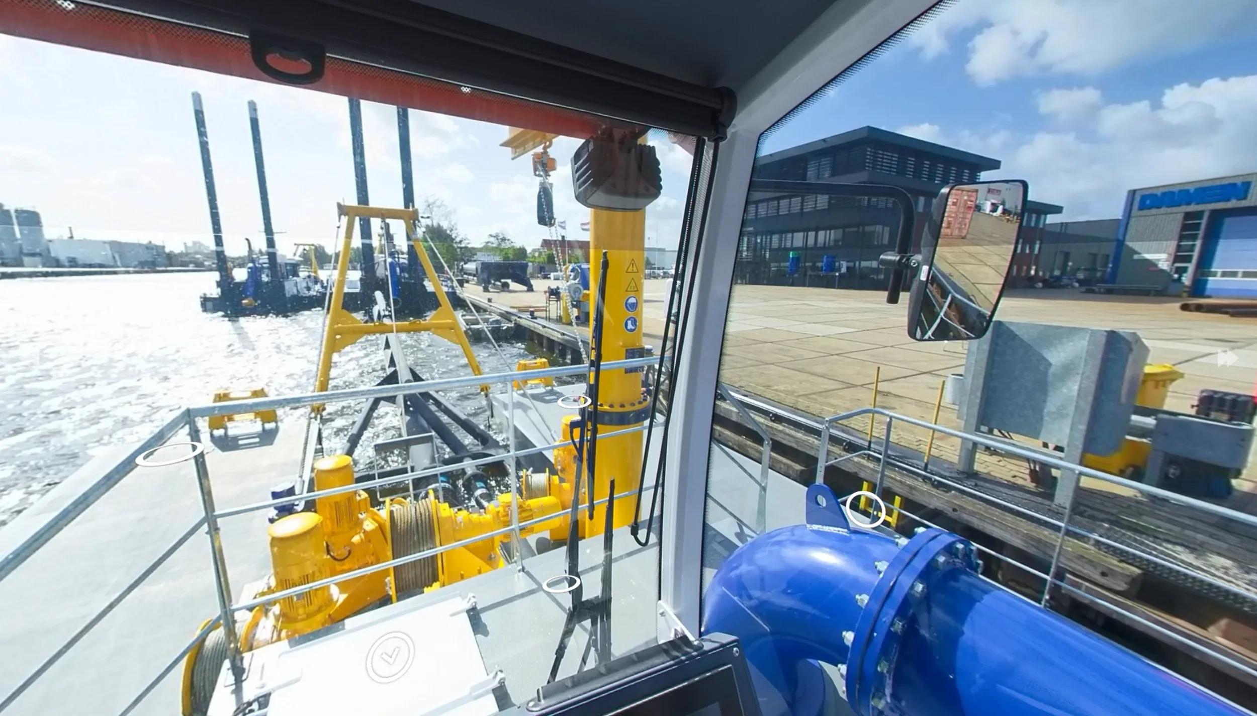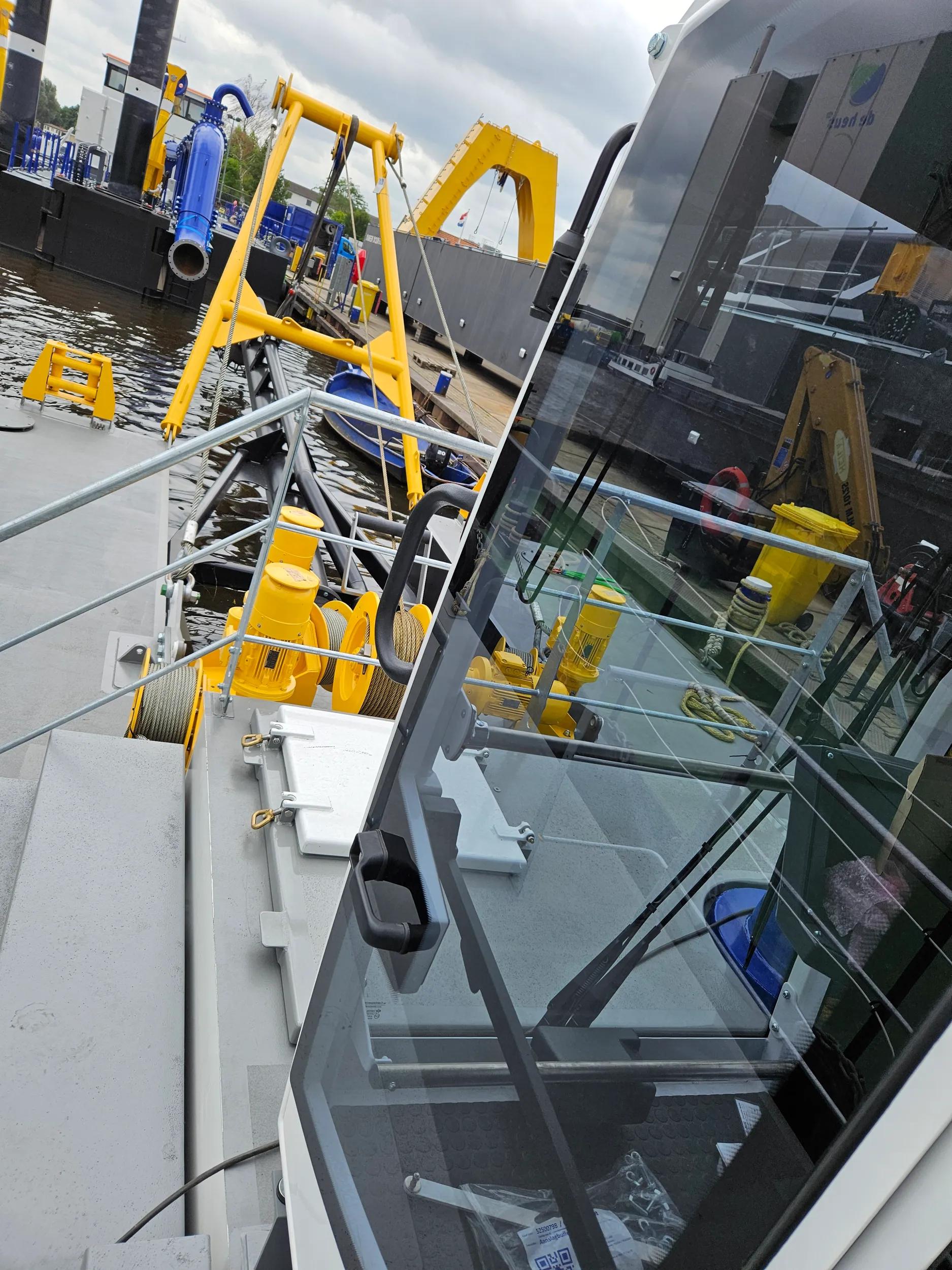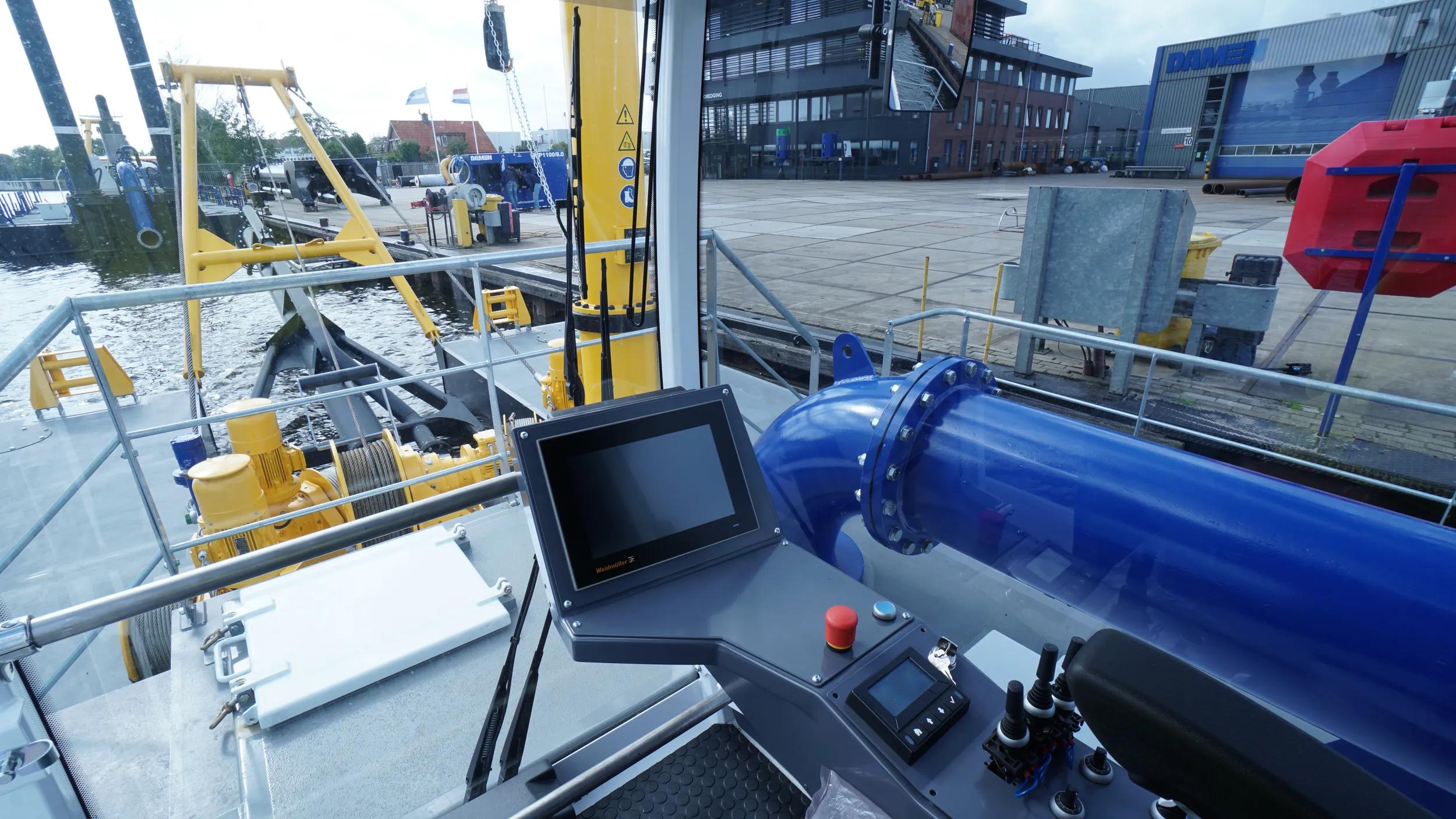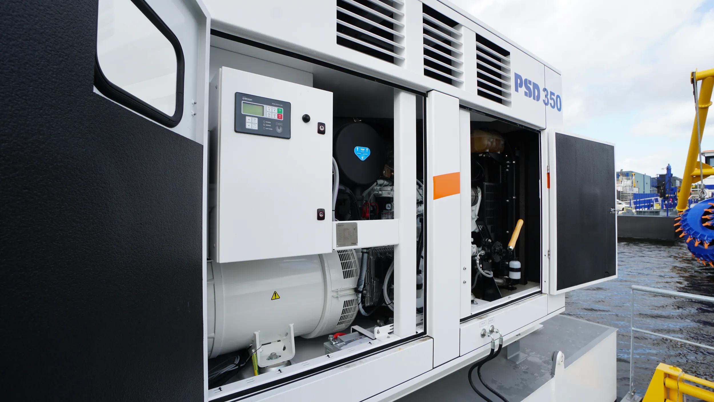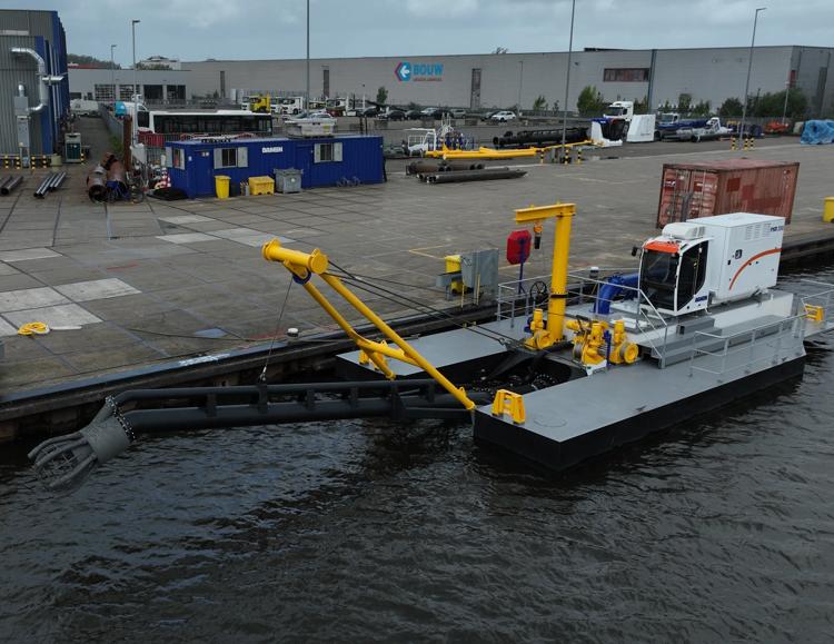 The PSD350 is a compact and straightforward plain suction dredger operated by one single operator. Its low-maintenance design features an in-board dredge pump and a high pressure jet water system for the specially designed plain suction head. The dismountable sand dredger is easily transportable in only three 40’ open top containers and reassembly is practical due to the limited unit weight and the easy coupling system. The mining dredger is anchored and repositioned using three electric manoeuvring winches.