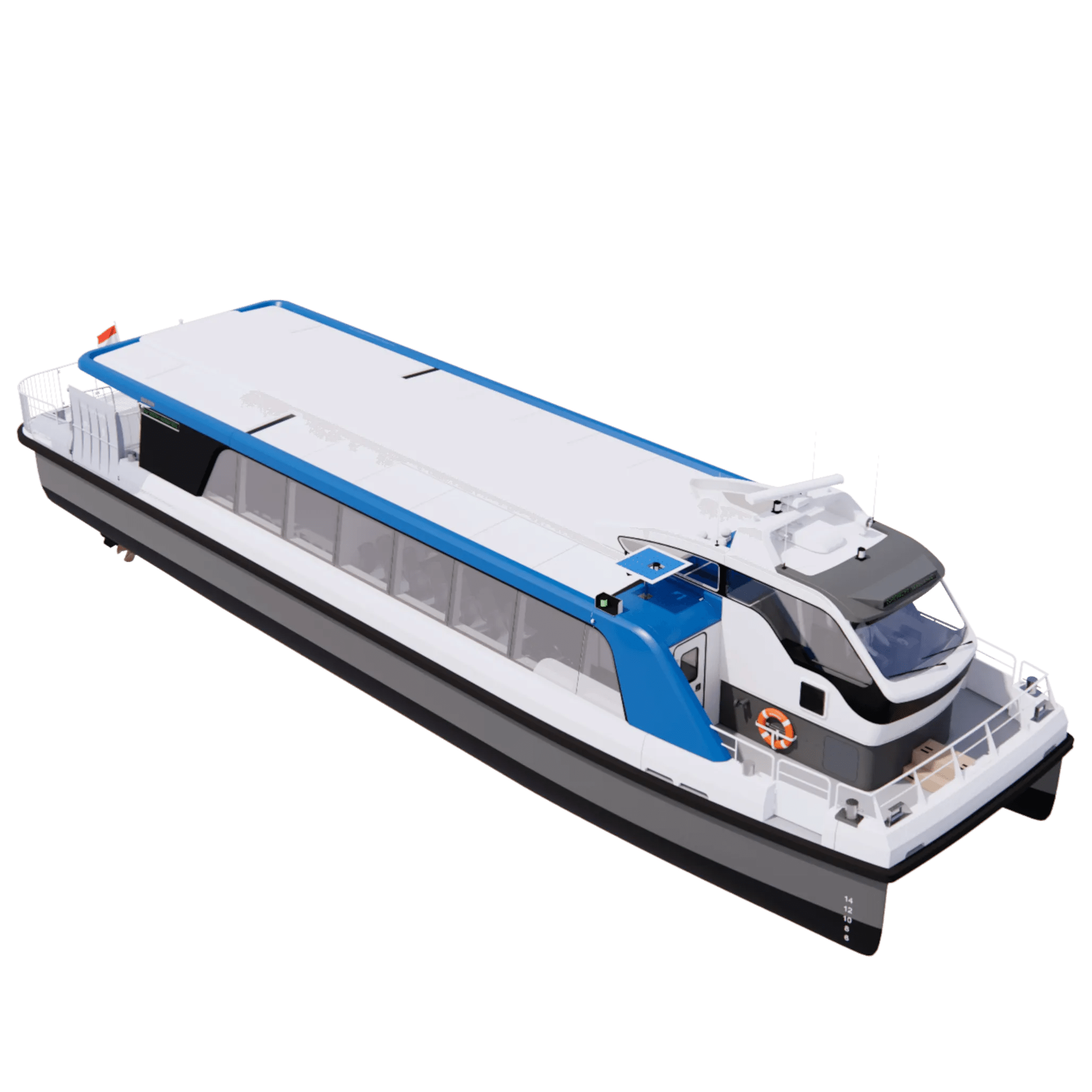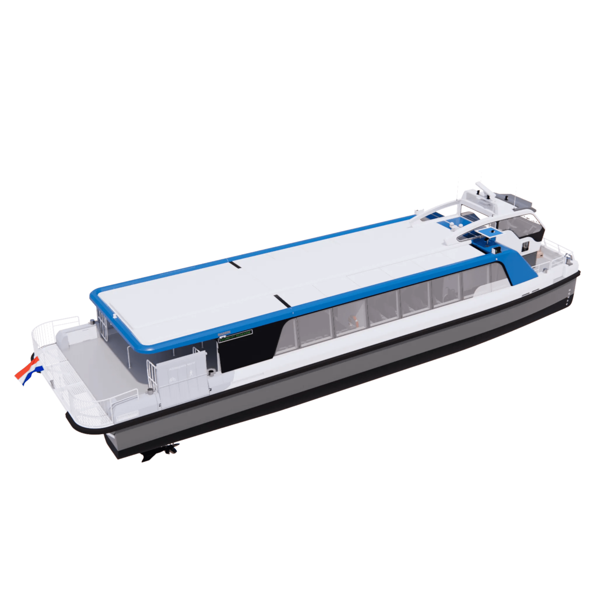 The modular design is suitable for a large variety of applications. Damen water buses can be deployed as taxis, sightseeing boats, commuter ferries, for dinner cruises and many other uses. The Damen Waterbus can be customised in many different ways. Customers can specify the passenger capacity, bicycle and cargo space, entertainment, top speeds, climate control options, different colours and liveries, advertising and more. The fully-engineered composite structure embodies years of operational experience and testing, resulting in a strong and lightweight hull and superstructure.