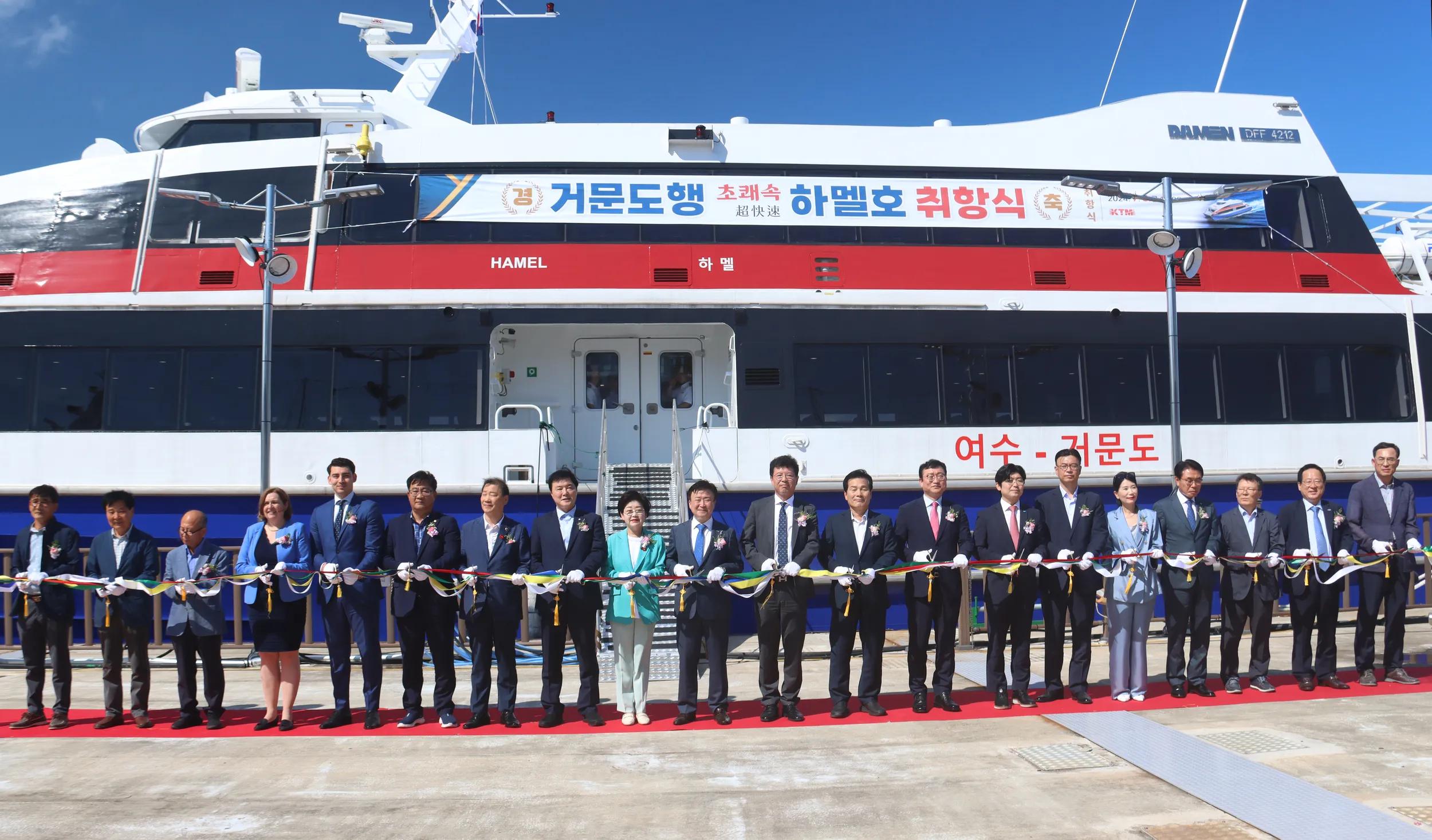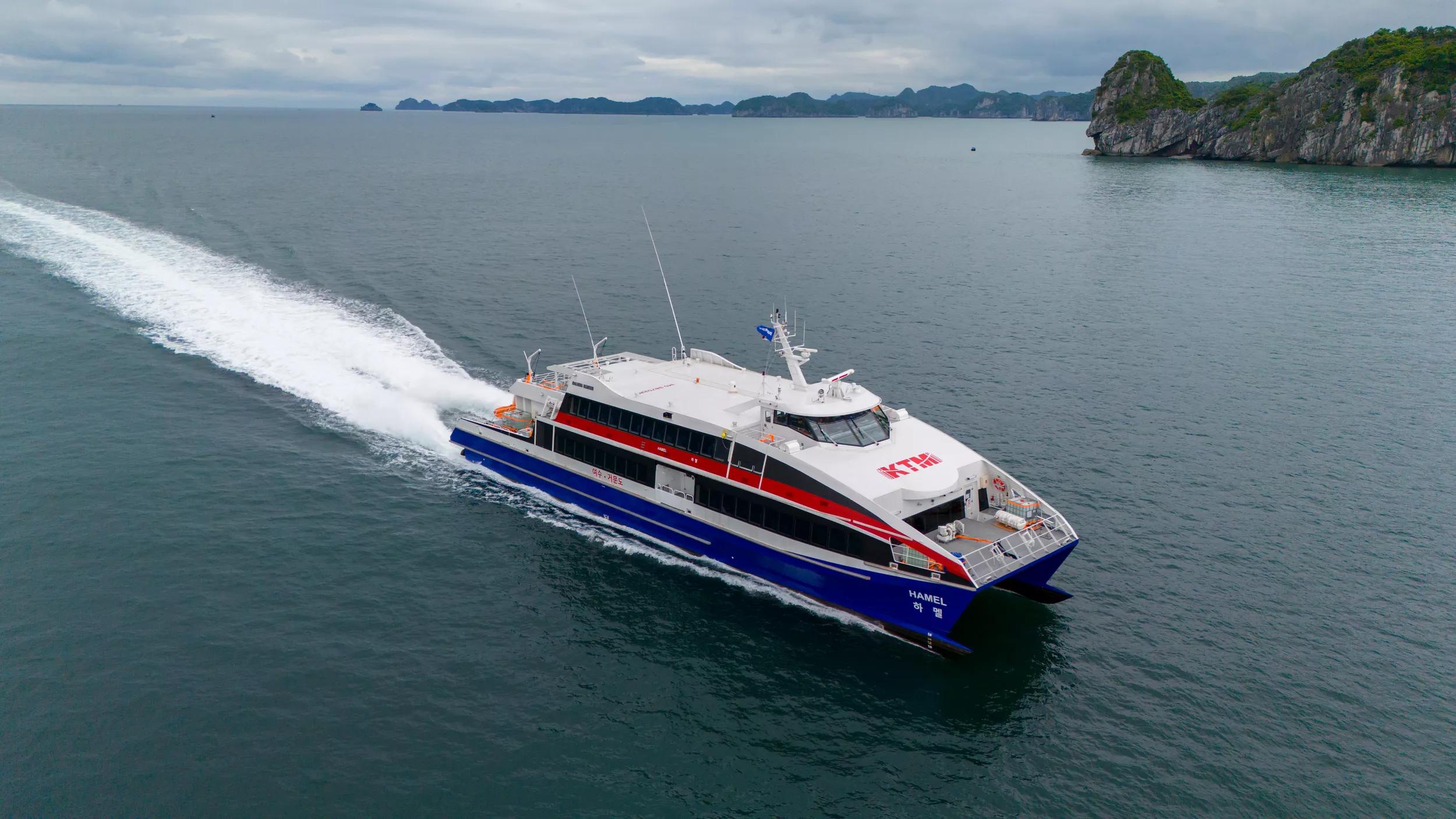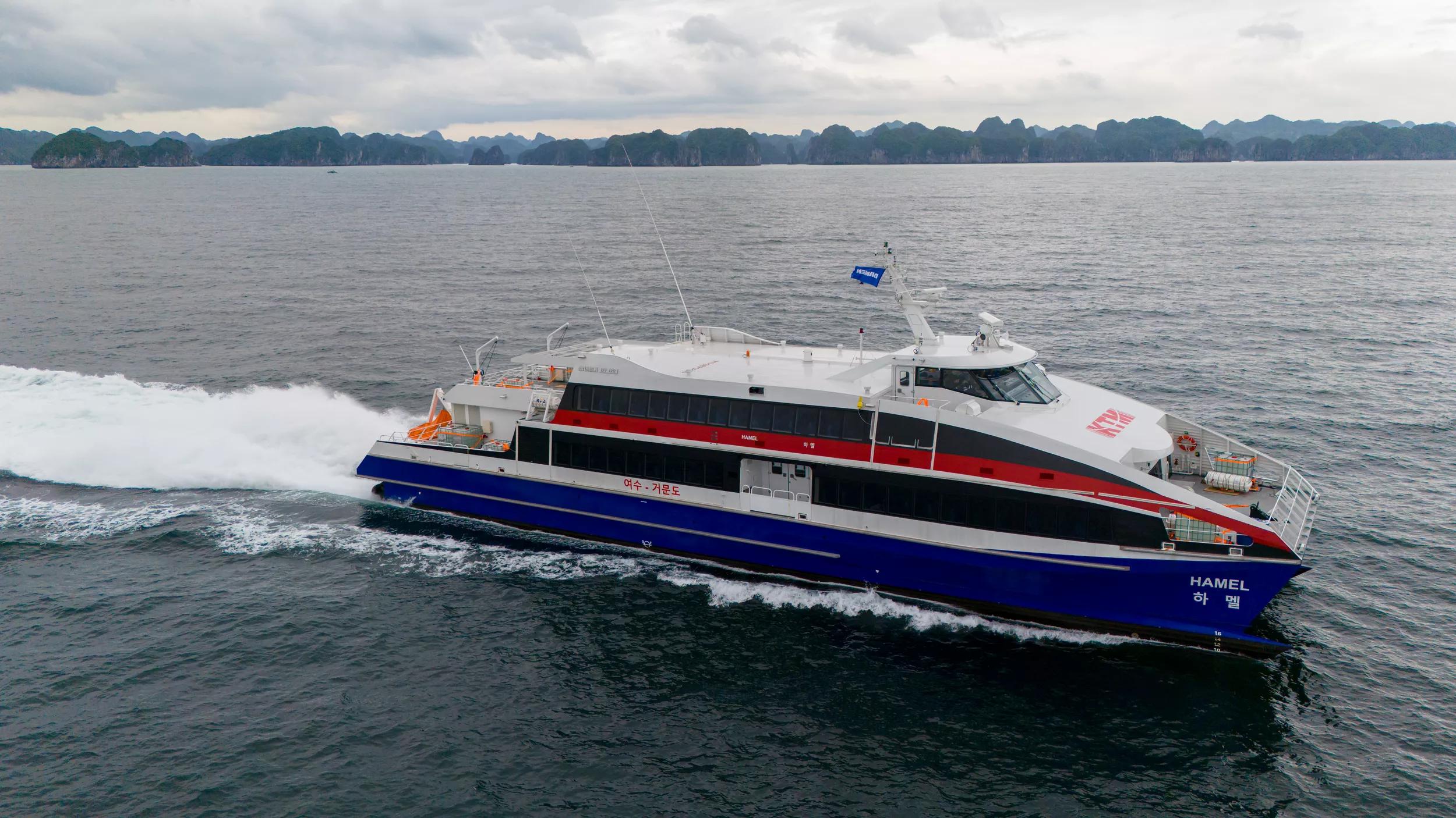 We are thrilled to announce that South Korea’s KT Marine has welcomed its newest vessel, the Damen Fast Ferry 4212, named Hamel. Ordered earlier this year, it was swiftly delivered thanks to Damen’s efficient construction.
