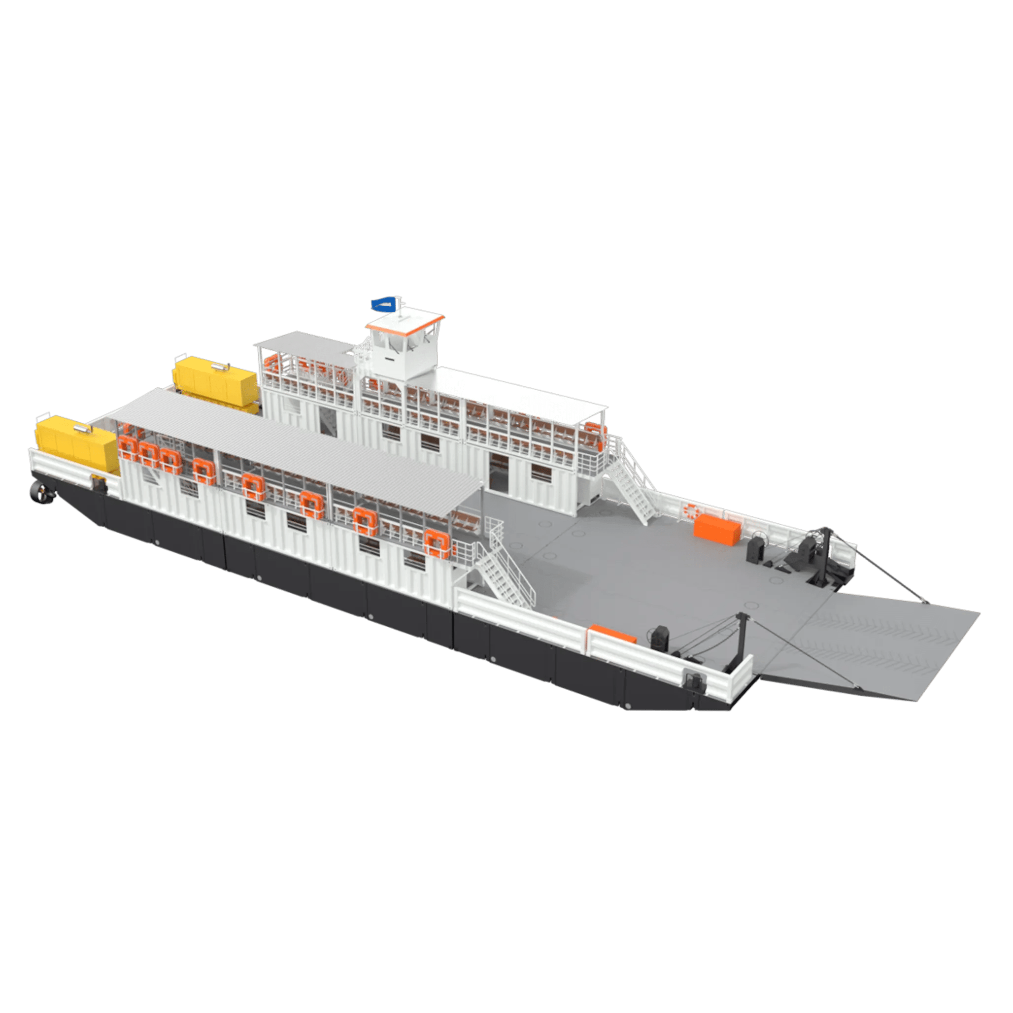 Our Modular Ferries provide customers with an entire vessel configured out of container-sized units. The ferries can easily be transported to remote areas to be assembled on site.