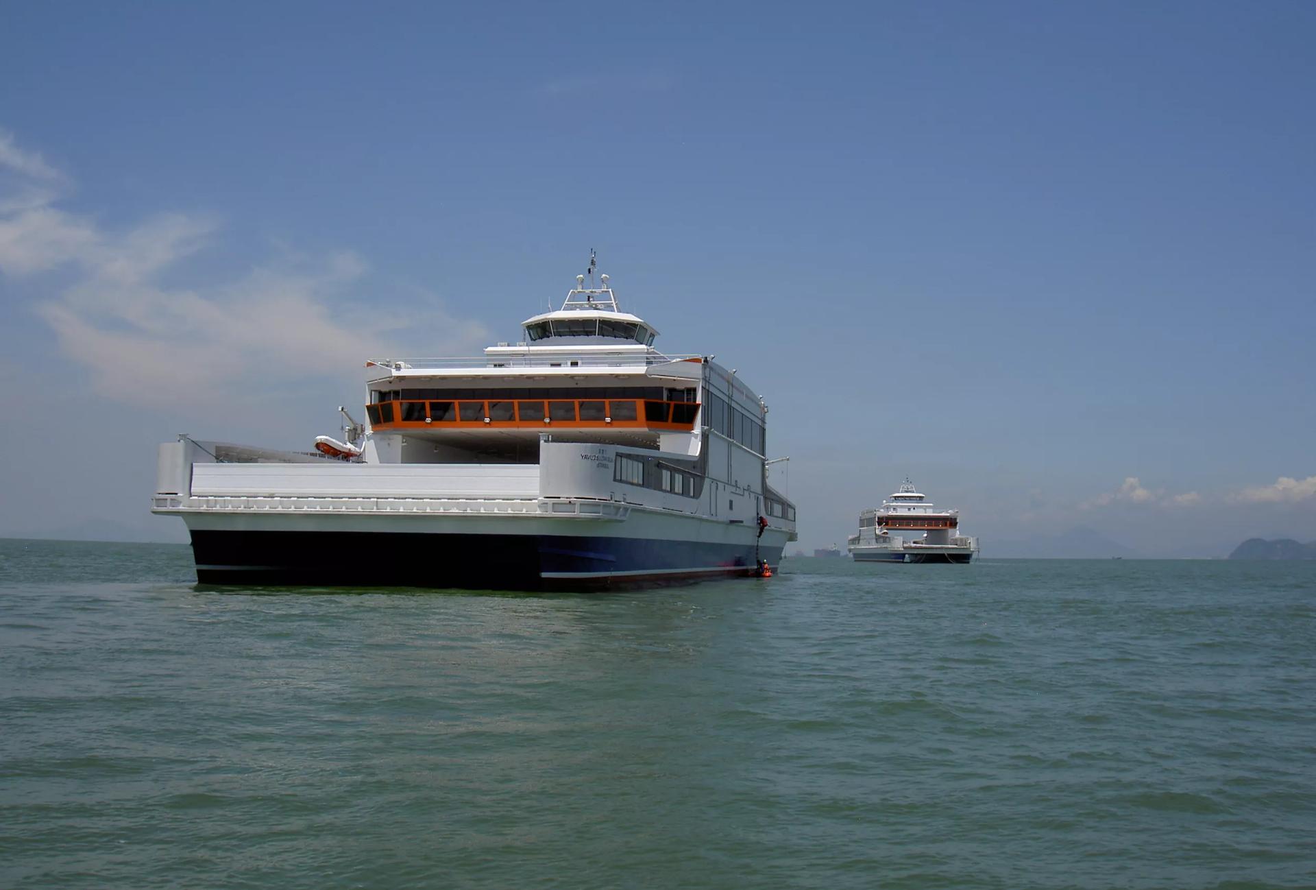 The double ended ferry design reduces the need for high top speeds. Low fuel consumption is achieved by the low weight and low resistance of the aluminium catamaran hull.