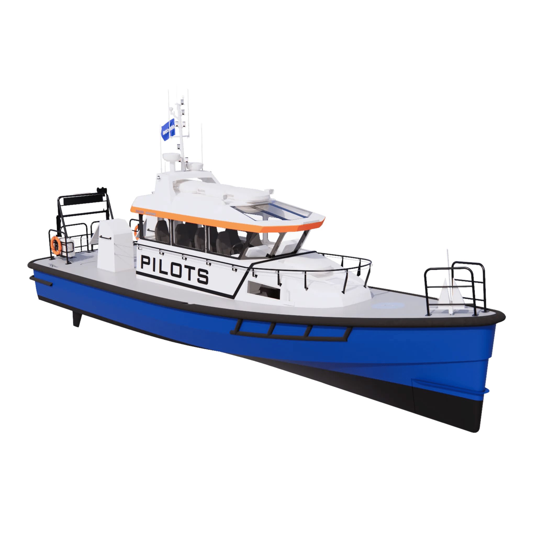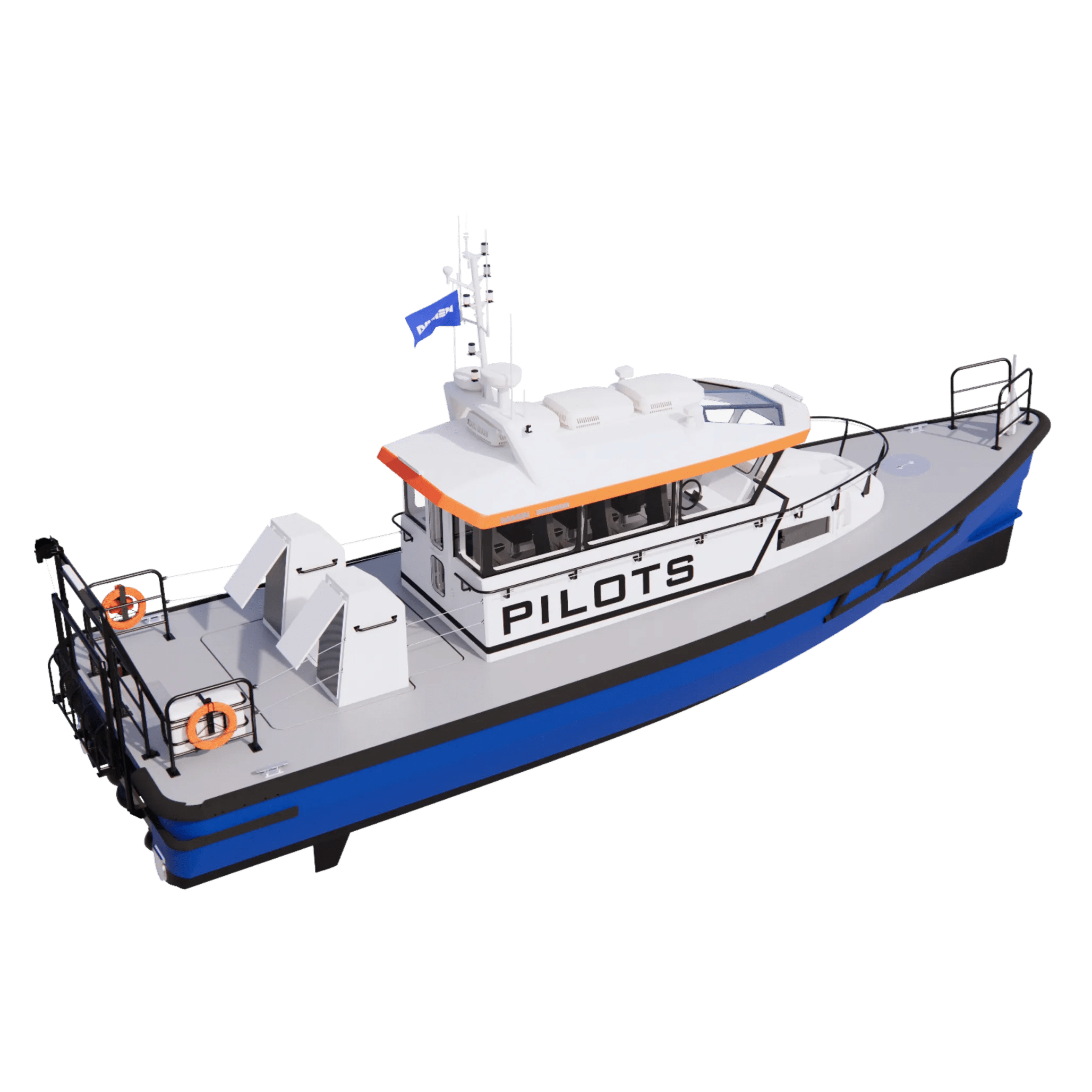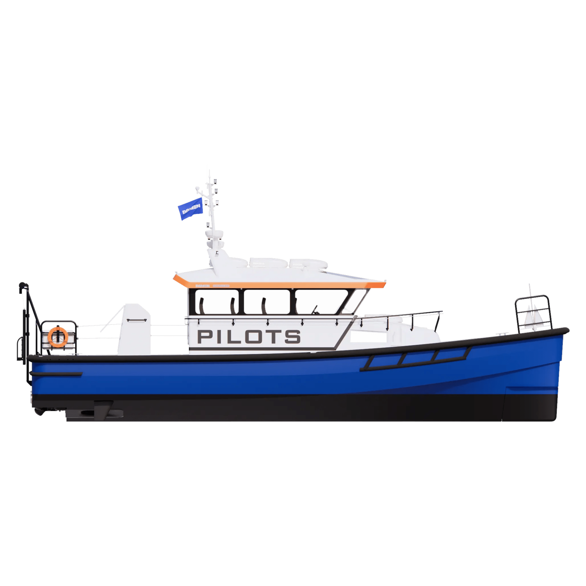 The Damen Stan Pilot 1605 FRP is a modern vessel of proven, standard design built of lightweight, durable composite materials and featuring a modified Axe Bow for excellent seakeeping. Its use of high quality components ensures outstanding performance and low maintenance. Safety is optimised via a 360-degree view from the wheelhouse and large deck for safe boarding. The vessel is propelled by waterjet propulsion driven by diesel engines.