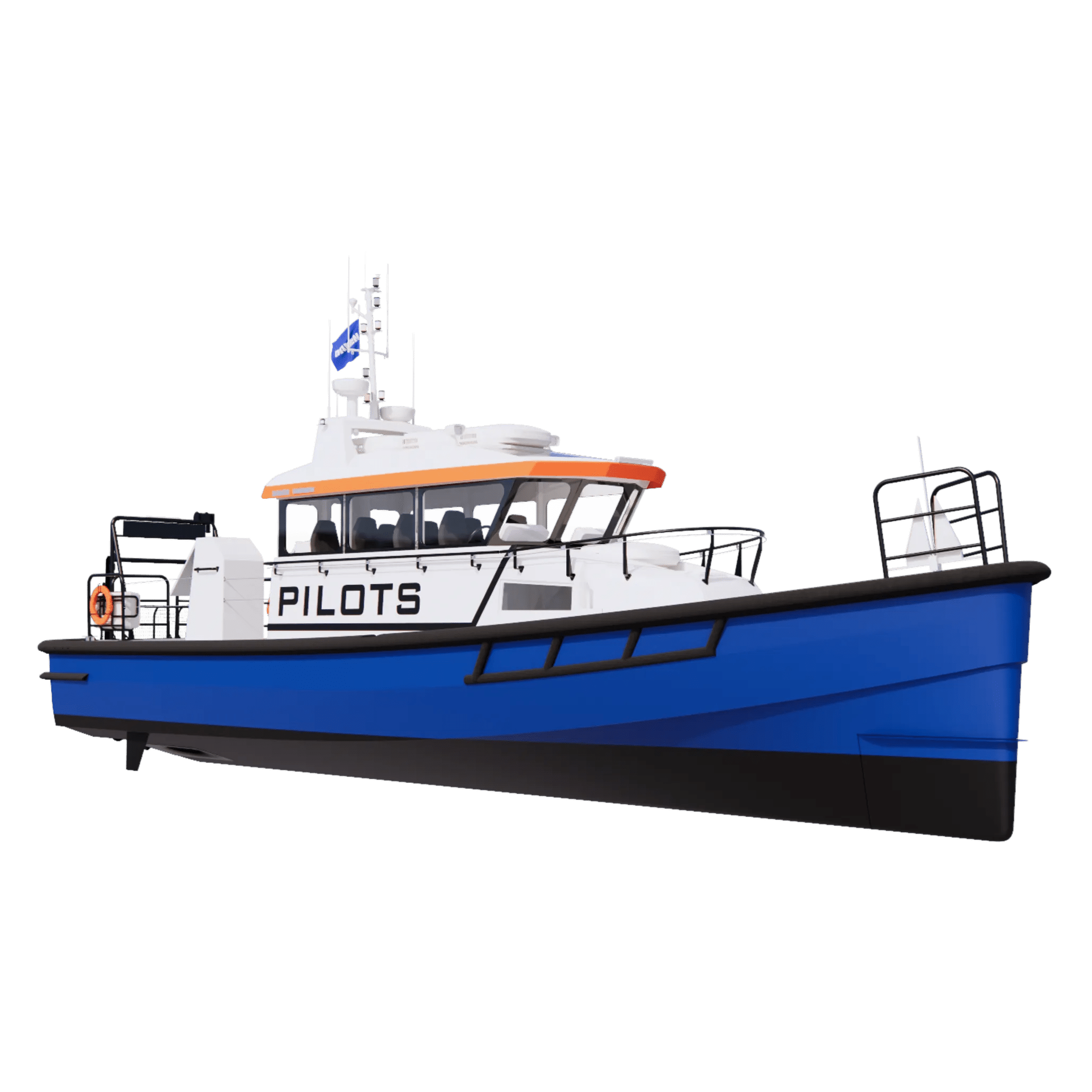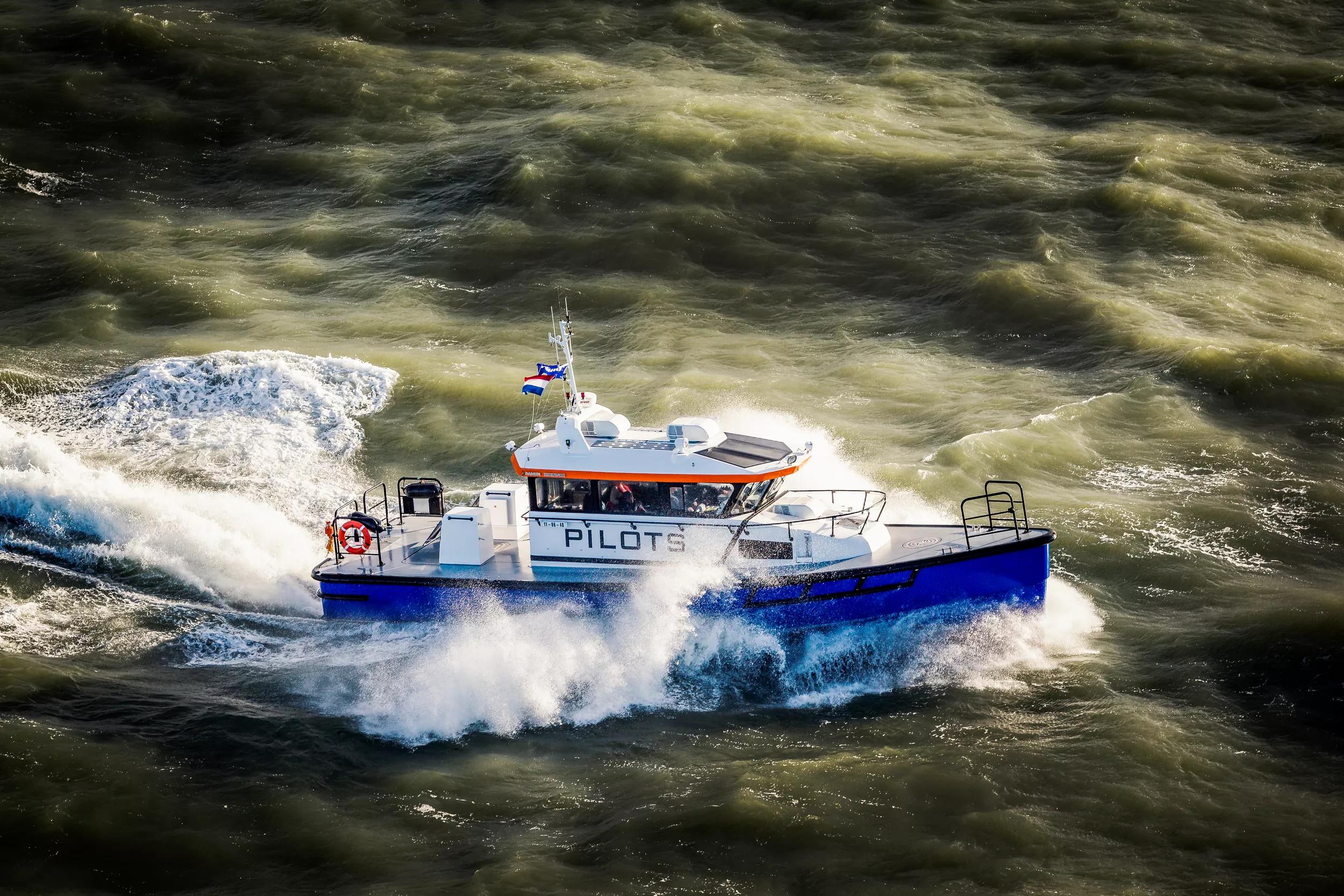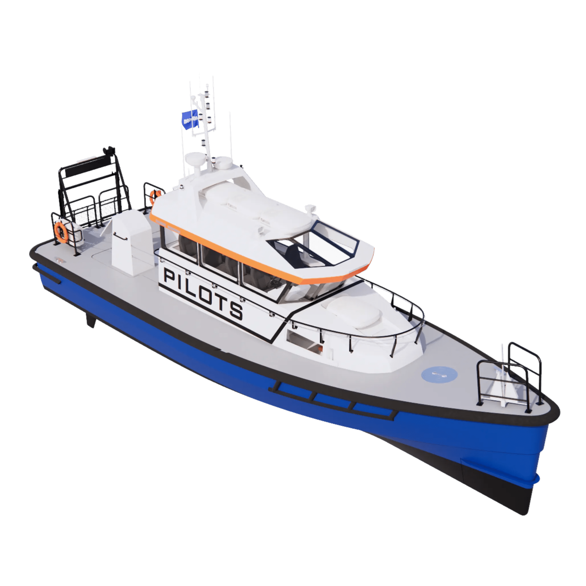 The Damen Stan Pilot 1605 FRP is a modern vessel of proven, standard design built of lightweight, durable composite materials and featuring a modified Axe Bow for excellent seakeeping. Its use of high quality components ensures outstanding performance and low maintenance. Safety is optimised via a 360-degree view from the wheelhouse and large deck for safe boarding. The vessel is propelled by waterjet propulsion driven by diesel engines.