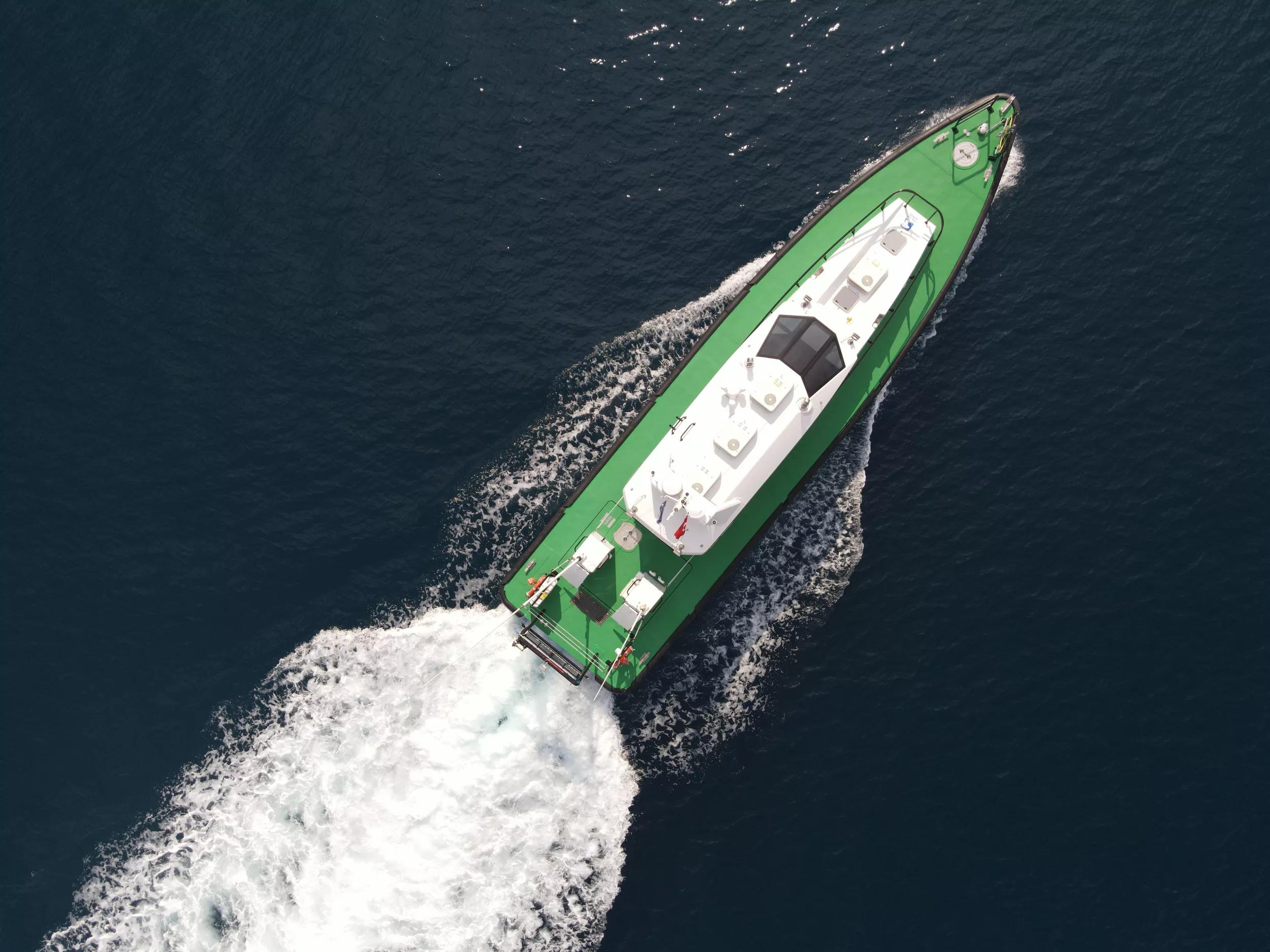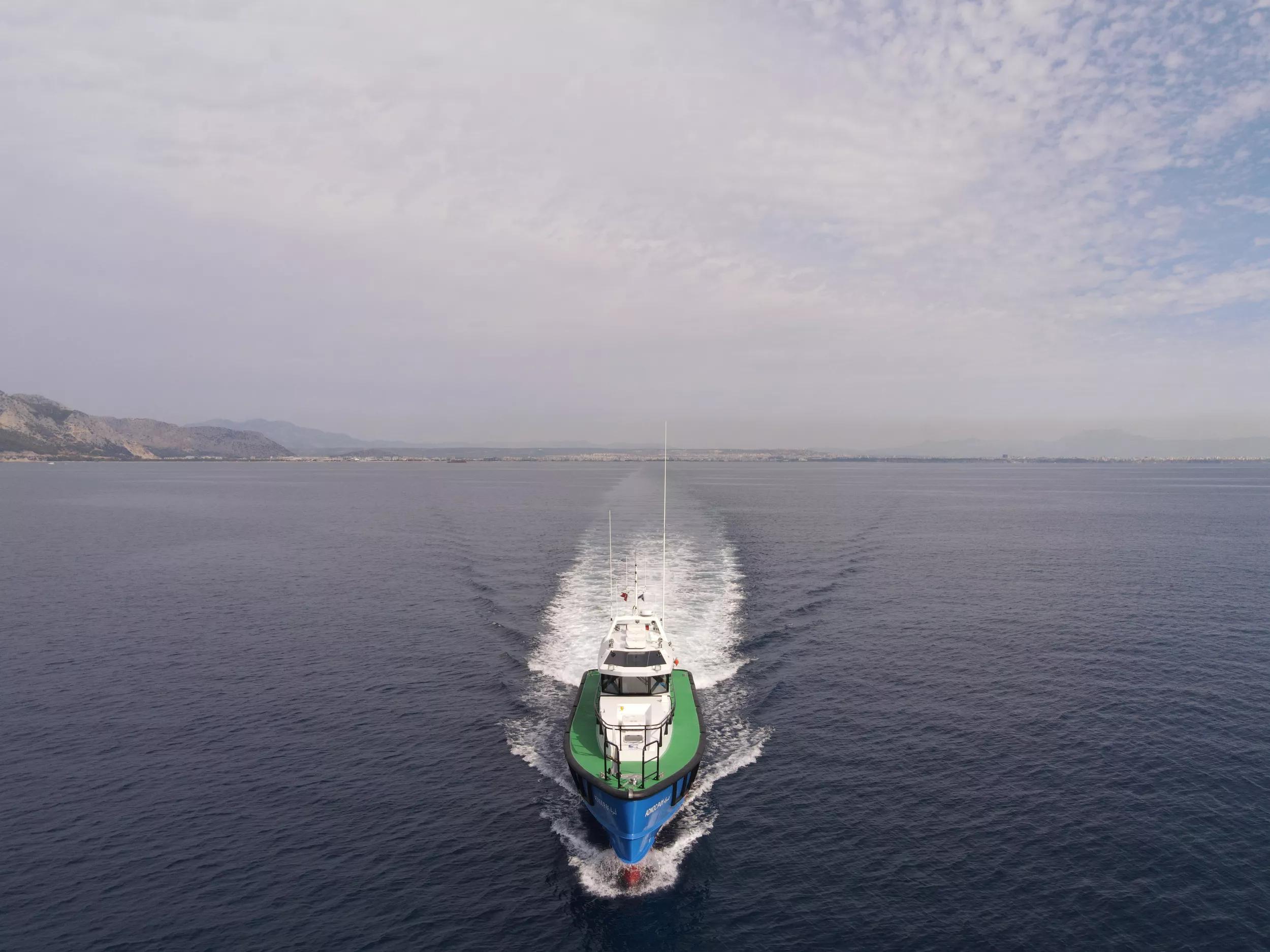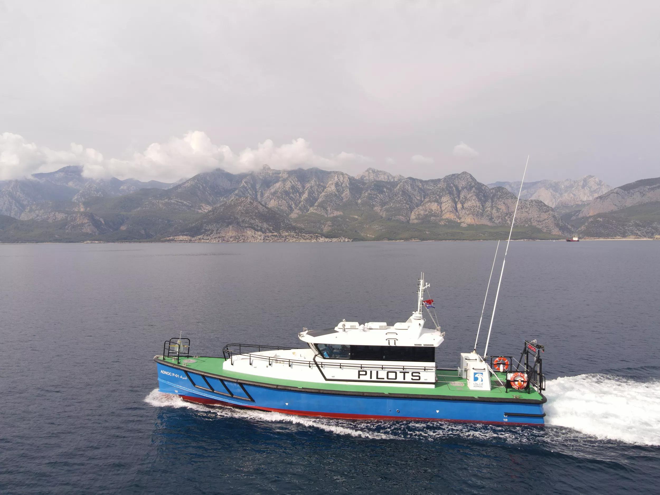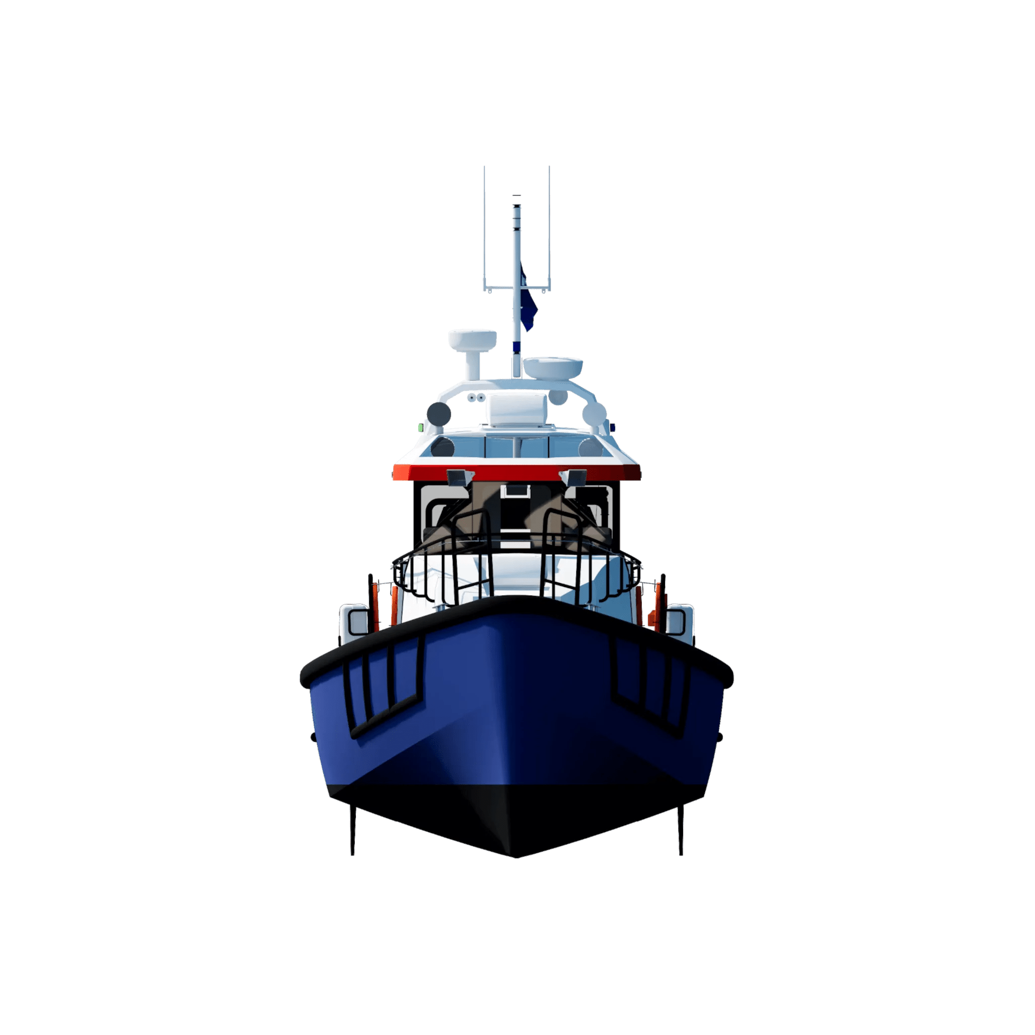 The Damen Stan Pilot 1905 is a modern vessel of proven, standard design built of aluminium and featuring a modified Axe Bow for excellent seakeeping. Its use of high quality components ensures outstanding performance and low maintenance. Safety is optimised via a 360-degree view from the wheelhouse and large deck for safe boarding. The vessel is propelled by waterjets driven by diesel engines.