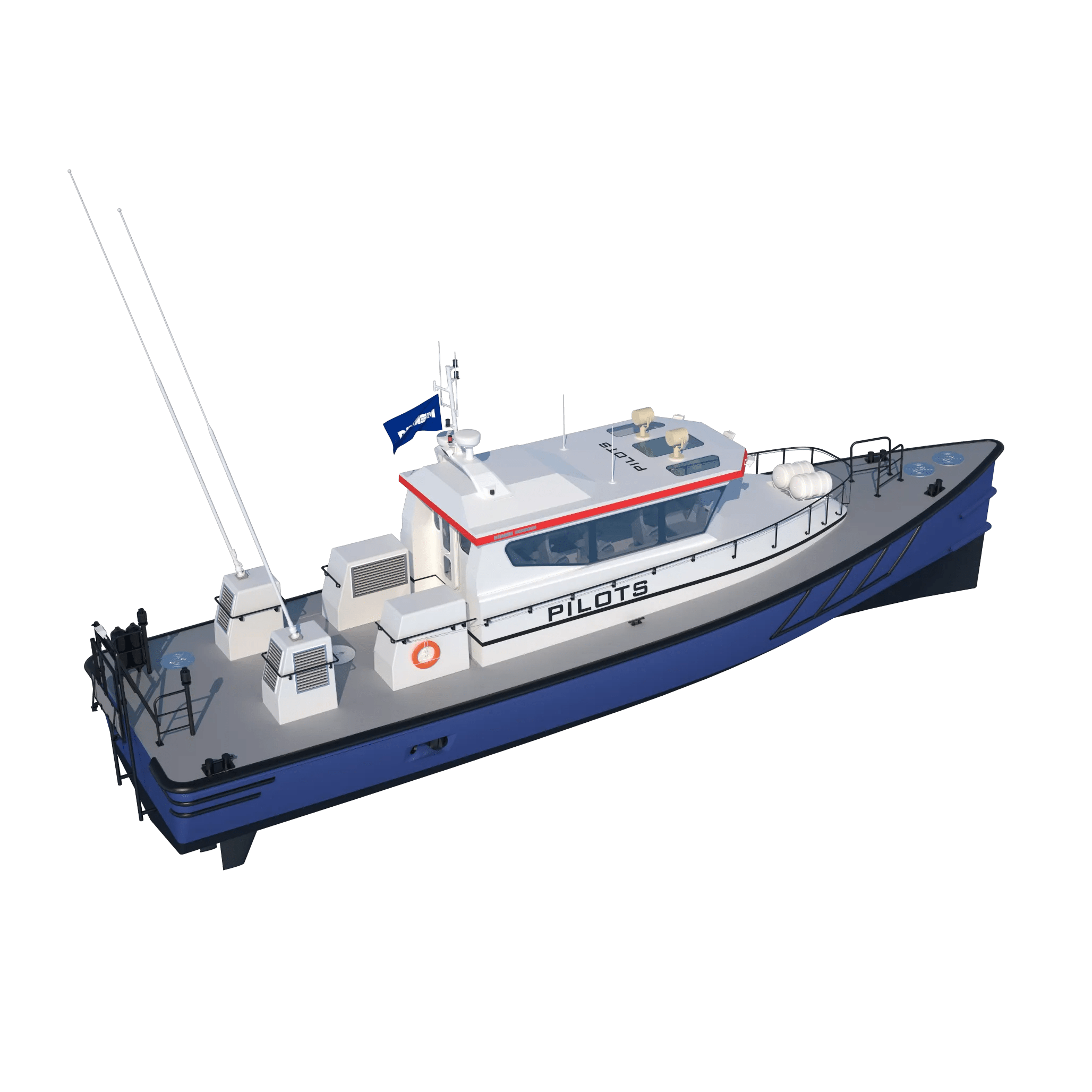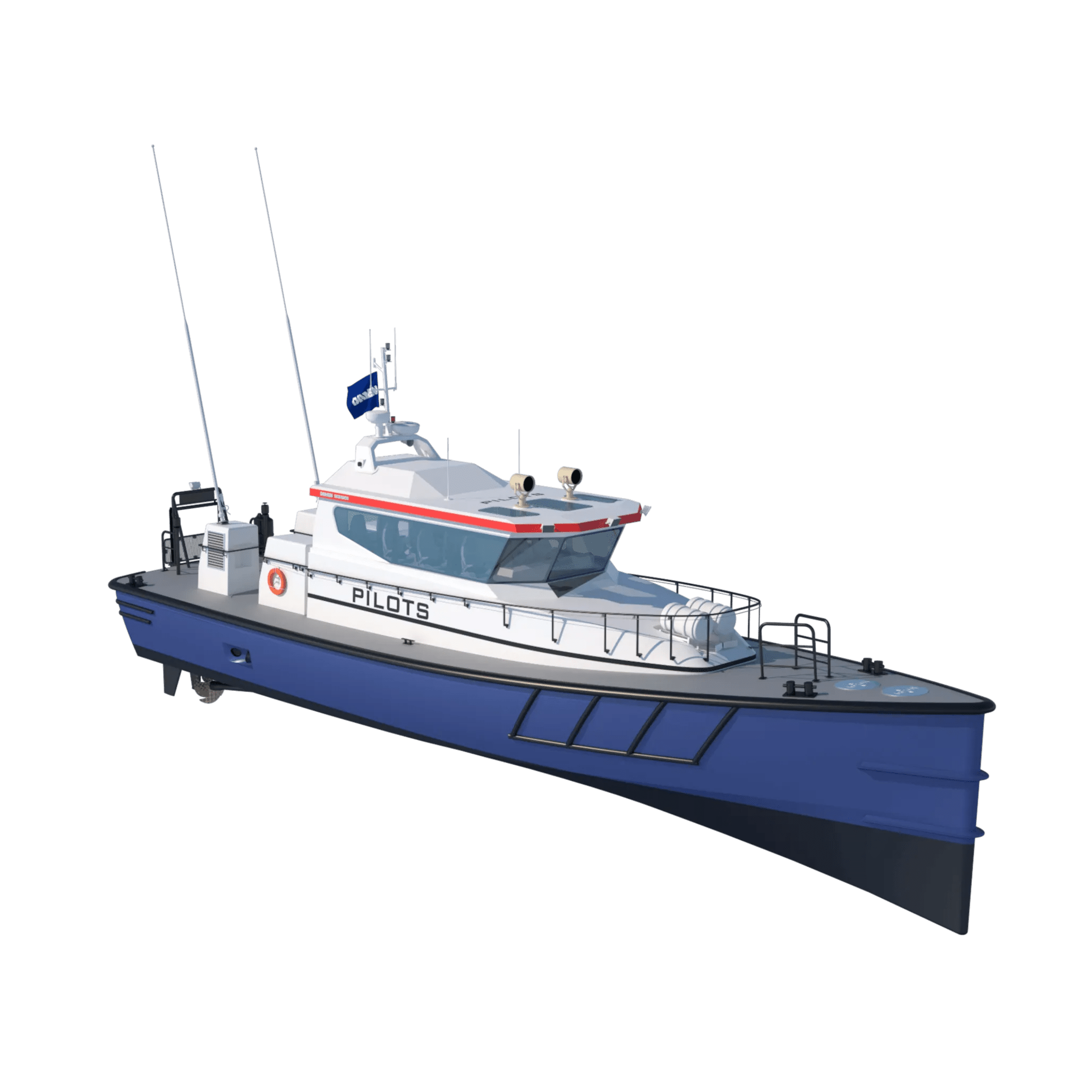 The Damen Stan Pilot 2205 FRP is a modern vessel of proven, standard design built of lightweight, durable composite materials and featuring a modified Axe Bow for excellent seakeeping. Its use of high quality components ensures outstanding performance and low maintenance. Safety is optimised via a 360-degree view from the wheelhouse and large deck for safe boarding. The vessel is propelled by two fixed pitch propellers, driven by diesel engines.