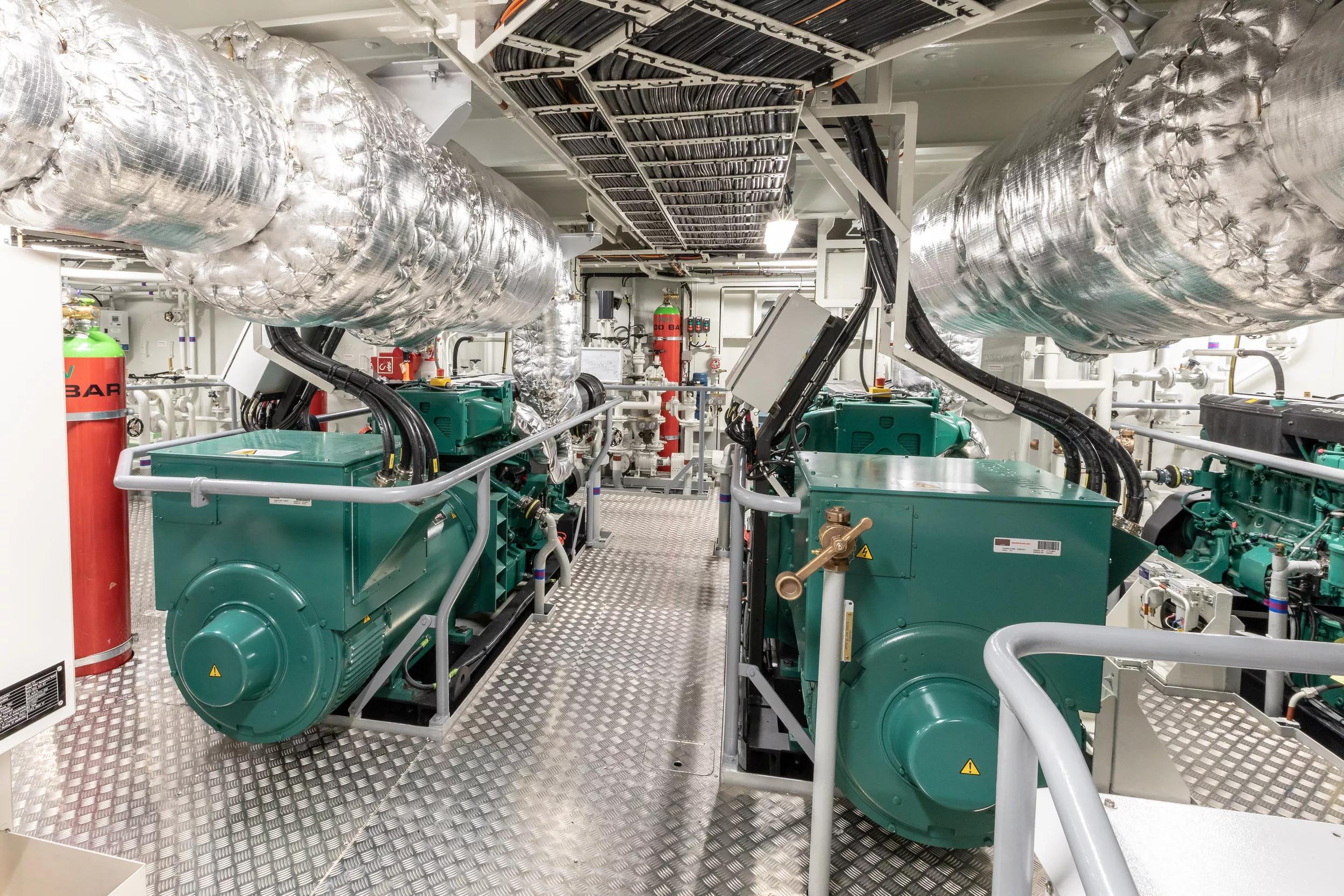The standard UV 4312 comes with a diesel-electric configuration that provides an efficient, flexible power supply for the 750kW propulsion installation and deck equipment when moored within farms. During the build of VOLT Processor protection was added for the propellers, alongside a large oxygen generating plant.