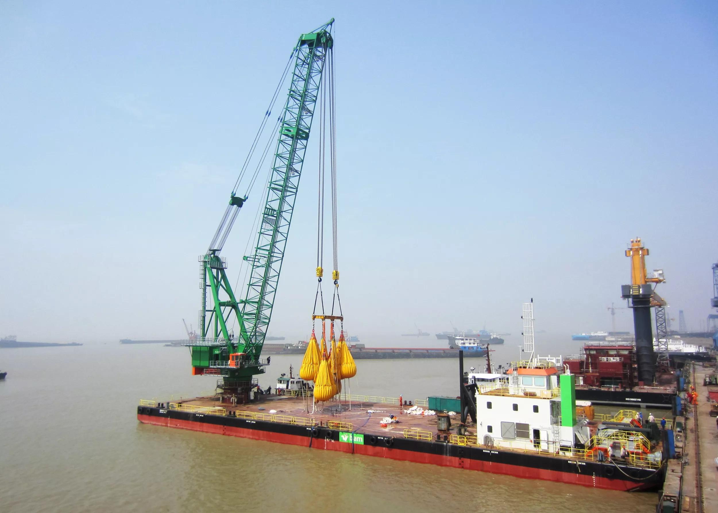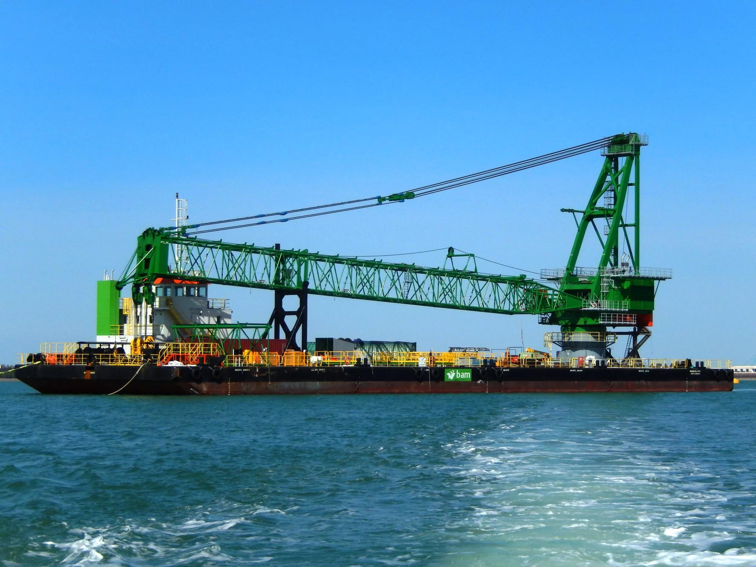 The IB 429 is a floating crane barge for construction work and heavy lifts. The crane can handle heavy lifts up to 400 tonnes and has a 60 metre boom.