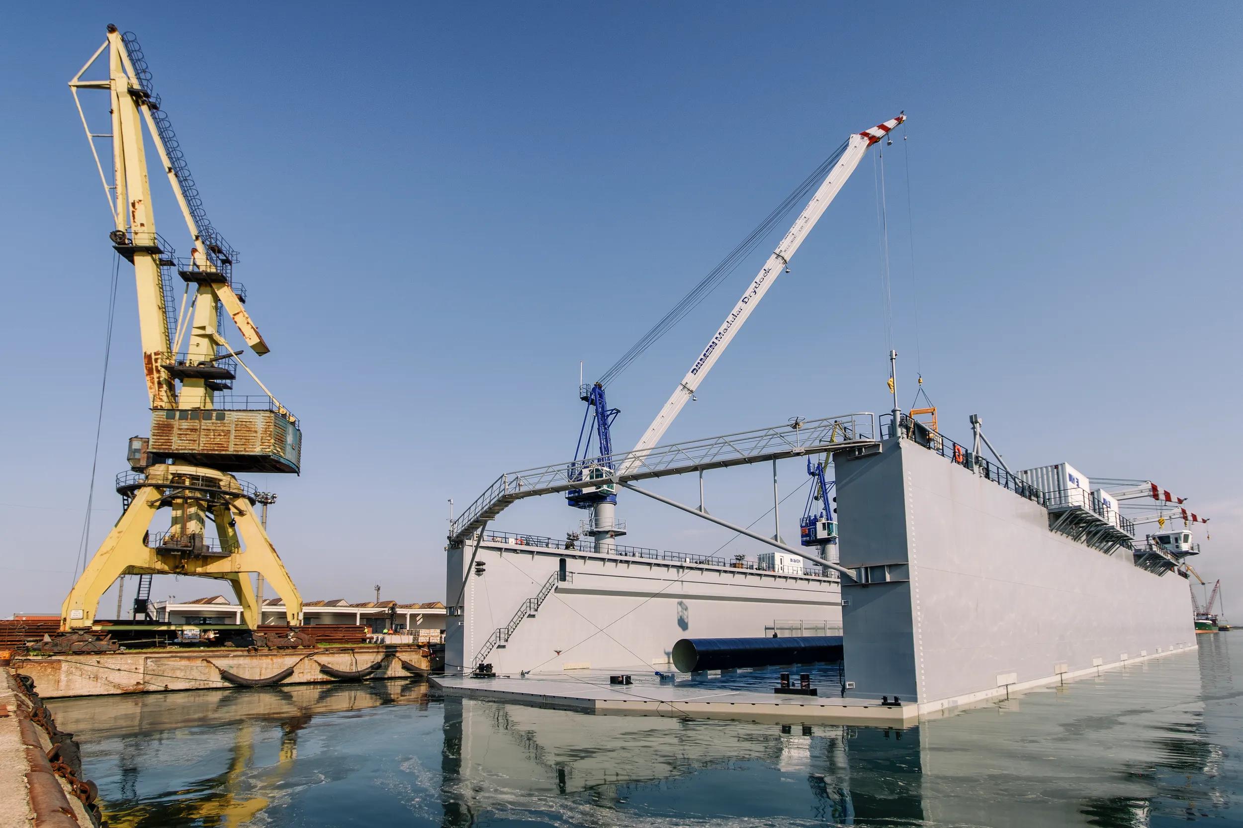 Damen’s Modular Floating Drydock (MFDd) outrivals any other floating drydocks in the market because it is based on a modular concept. It consists of multiple pontoons which can be detached for easy maintenance, and it can also be extended. Damen also delivers Load-out Recovery Docks (LOR Docks), for lifting vessels onto the quay.