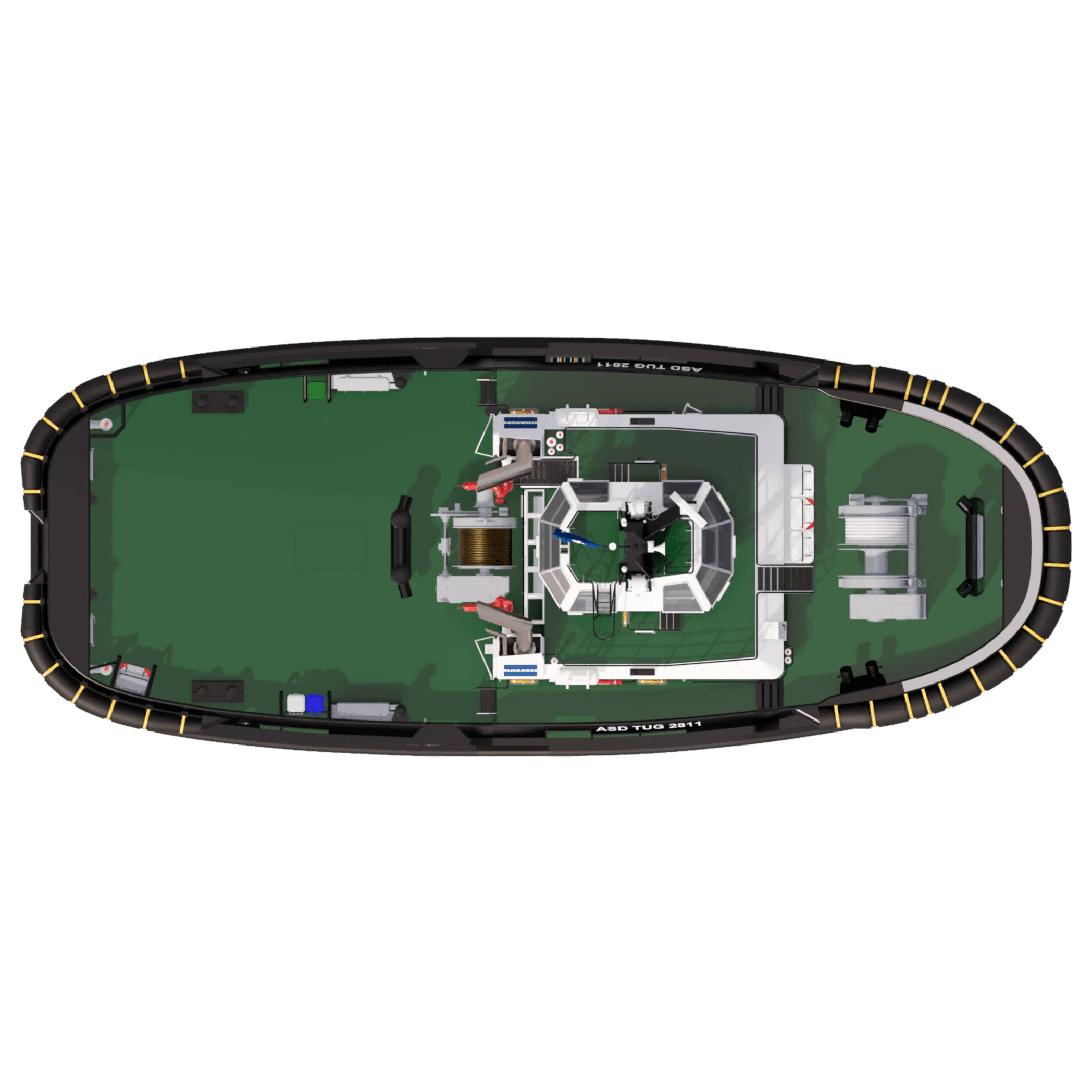 The ASD Tug 2811 is a highly manoeuvrable, high performance environmentally friendly tug. The fore deck has a completely flush design, optimised for various towing modes, giving the multipurpose tug optimal performance. The ergonomic design includes easy accessibility to winches, bollards and the fairleads.