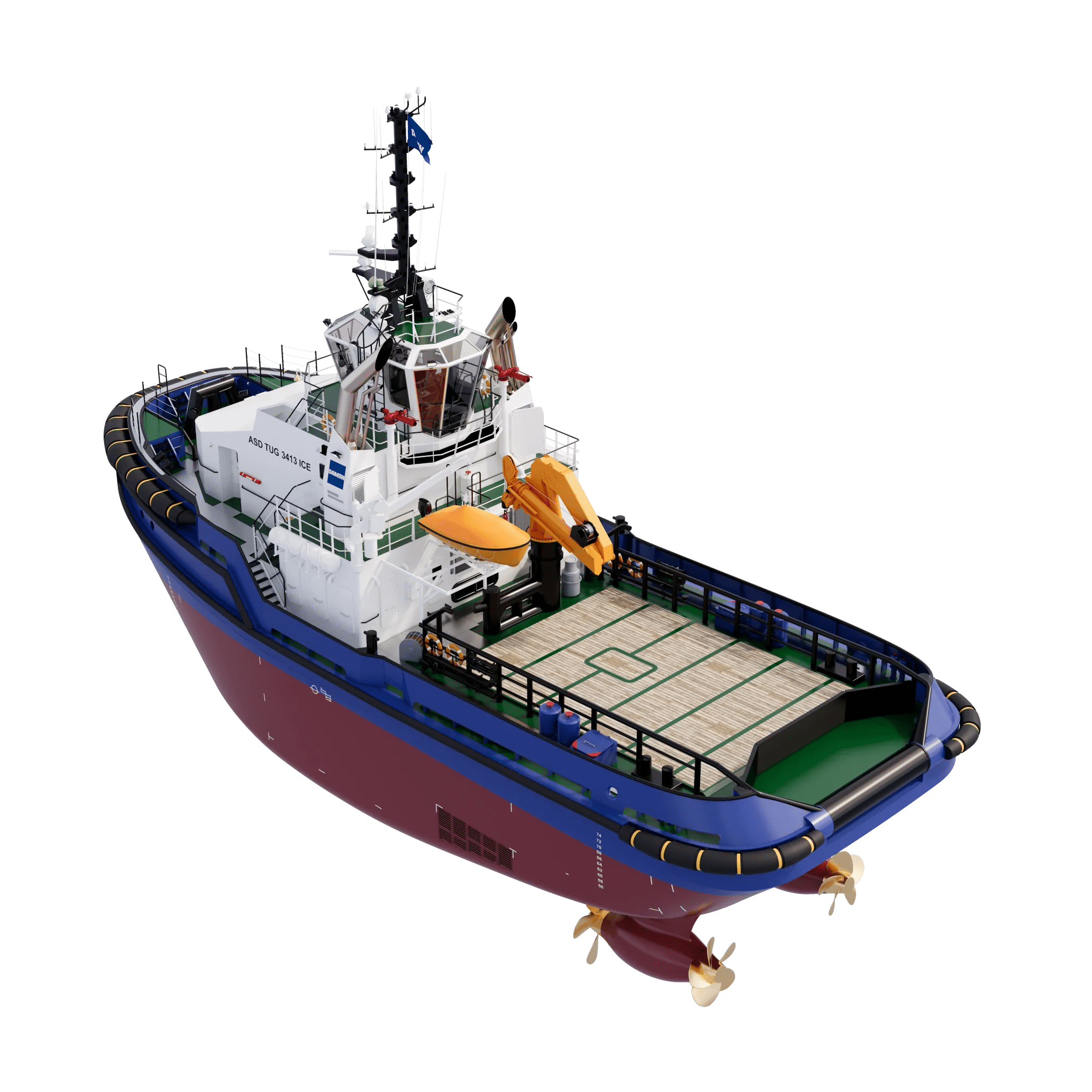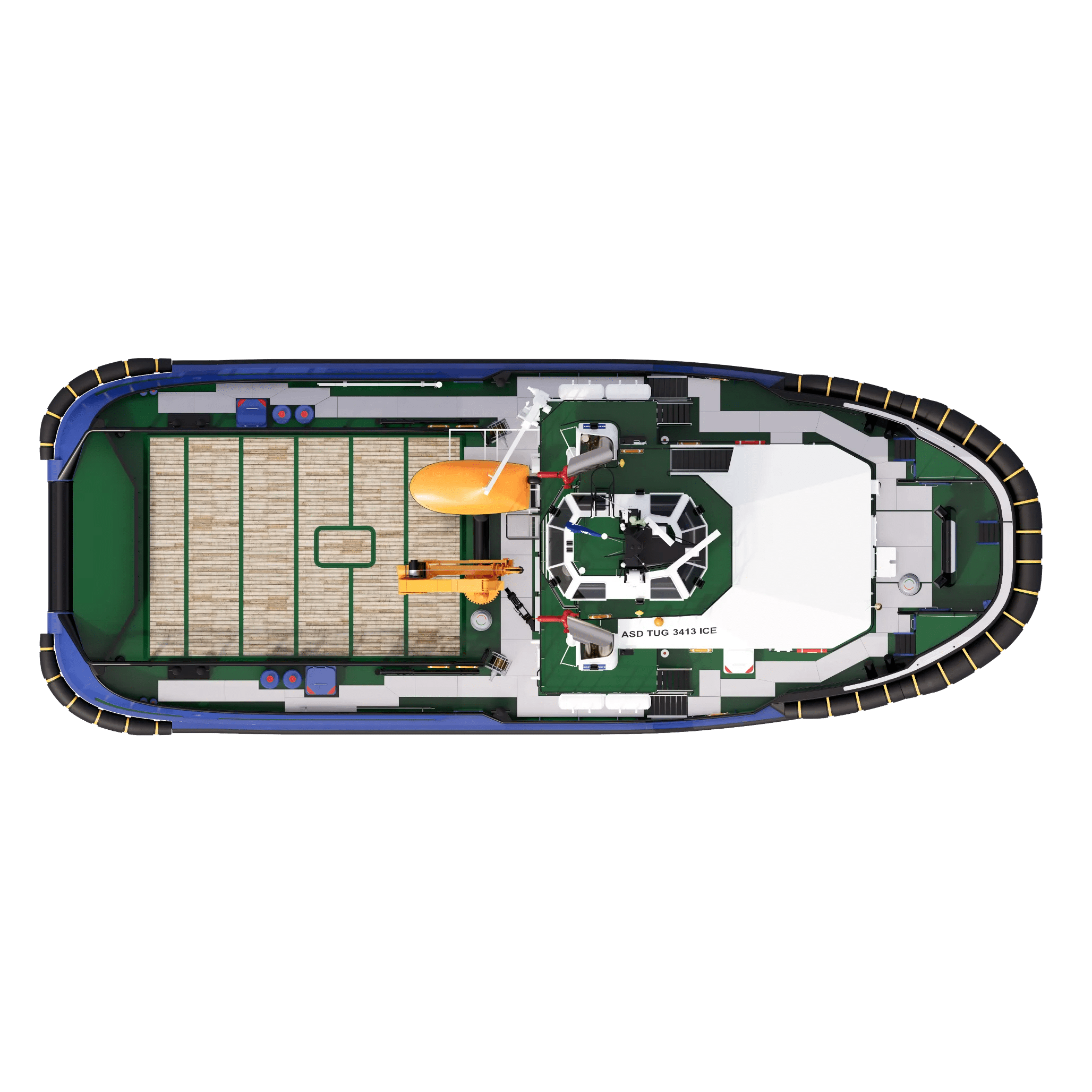 Optimised for the harshest ice conditions in harbours and open waters, the hull of the ASD Tug 3413 ICE exceeds Class requirements. Protected thrusters, high quality paint designed for minus 50⁰ C, cooling systems and tank positioning that avoids the risk of freezing – every aspect of the design focuses on ICE operations.