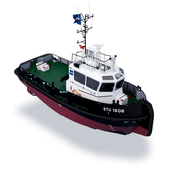 The Stan Tug 1606 is based on considerable knowledge, experience and customer feedback and is ideally suited for towing, mooring, pushing and survey operations. It has a twin screw propulsion. The well-known Damen philosophy of standardisation allows us to offer proven designs, proven quality and proven reliability, all of which contribute to lowering the total cost of ownership.