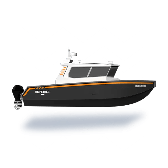 The Damen HDPE Workboat 1003 with superstructure is a heavy-duty workboat built from durable, impact-resistant HDPE. Its wide, stable hull and modular superstructure suit diverse roles including patrol, harbour, survey, and offshore support. Corrosion-free and low-maintenance, it combines sustainability with performance, safety, and long service life.