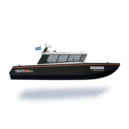 The Damen HDPE Workboat 1204 with superstructure is a heavy-duty workboat built from durable, impact-resistant HDPE. Its wide, stable hull and modular superstructure suits diverse roles β patrol, harbor, survey, and offshore support. Corrosion-free and low-maintenance, it combines sustainability with performance, safety, and long service life.